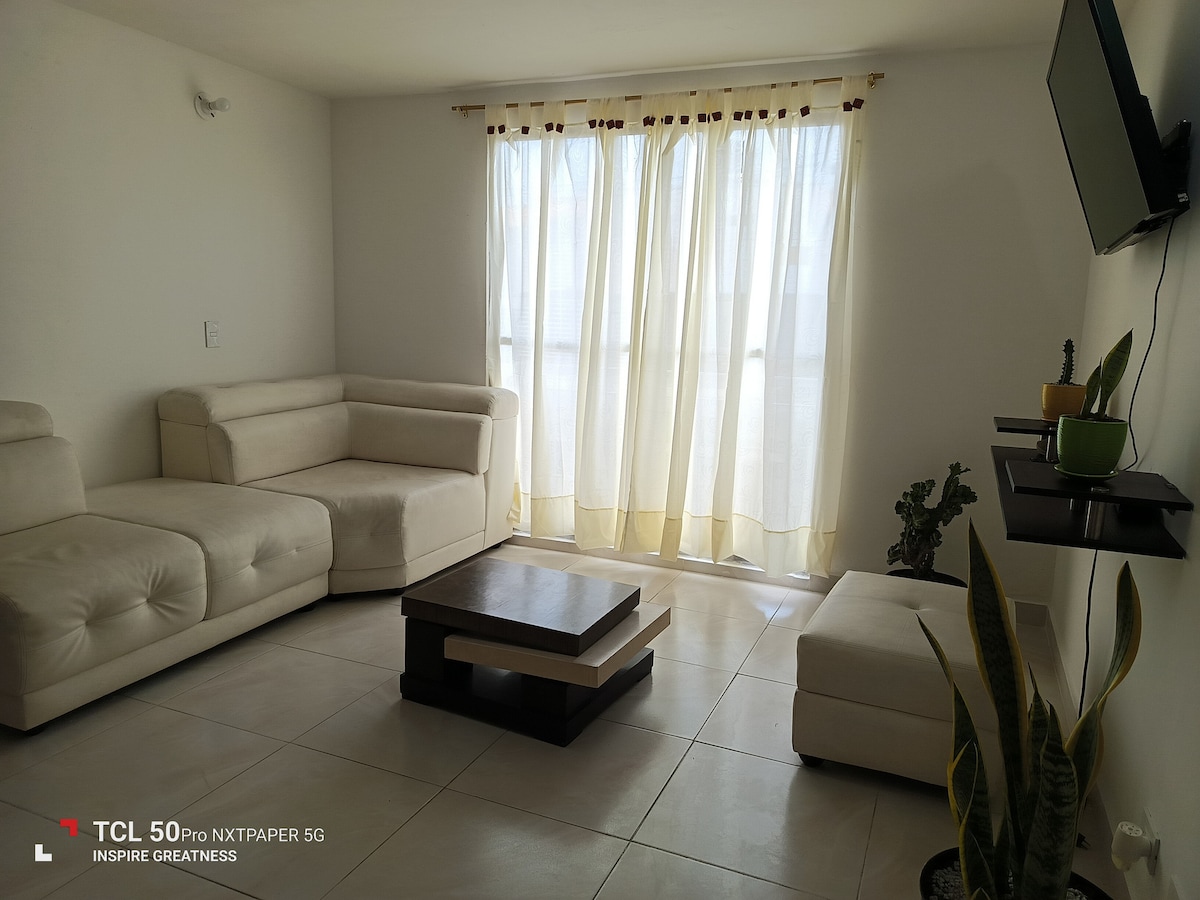 現代公寓,配有空調,非常適合家庭入住,配備了您在Huila度假所需的一切設備與服務 家具齊全 可供5人舒適入住 情侶 ✓冷氣 ✓風扇 ✓3房 ✓4張牀 ✓1間衛浴 ✓2臺電視 ✓冰箱、洗衣機、爐子、設備齊全的廚房 ✓24小時保全 ✓Ubicado piso 4. ✓Carport ✓ 泳池 ✓ 靠近Unicentro商場 ✓ 未成年人應與法定年齡的家庭成員一起入住。 很高興能為您服務