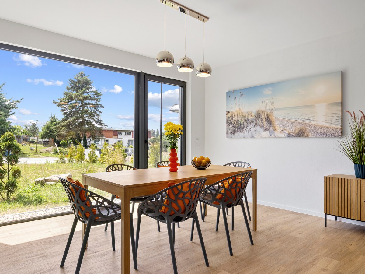 „Sonneneck“ – ein hyggeliges Holzhaus im Grünen, Teil eines Ensembles mit gemeinschaftlicher Sauna und fußläufiger Nähe zum Meer. Große Fenster öffnen den Blick in den Garten, Natur und Ruhe inklusive. Auf ca. 60 m² finden bis zu 4 Gäste (+2 Aufbettungen) Platz zum Wohlfühlen. Chillarea für Kids auf der Galerie, private Sauna-Wellnesszeiten entspannt reservierbar, kinderfreundlicher Strand in 10 min zu Fuß. Wäschepakete gegen Aufpreis buchbar, Early Check-In & Late Check-Out auf Anfrage.