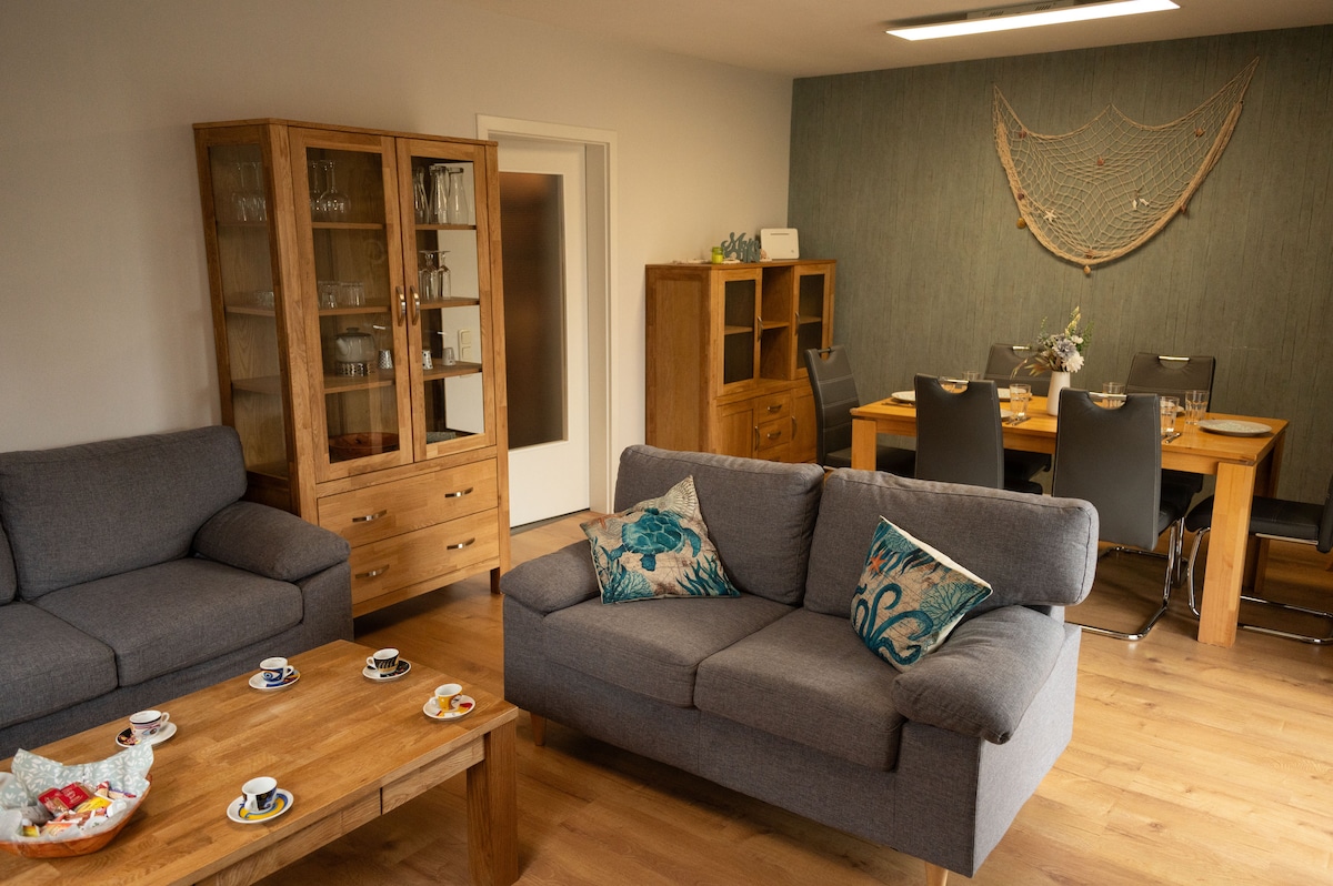 公寓位於旺格蘭市中心...通往大海/海灘...通往傑弗爾...通往東弗裏斯蘭...開車10分鐘即可抵達所有地方...直接在霍恩基爾亨是旺格蘭村兒童的遊樂場...有旺格蘭海灘、足球高爾夫球場等...在旺格蘭還有各種騎行小徑...來探索旺格蘭