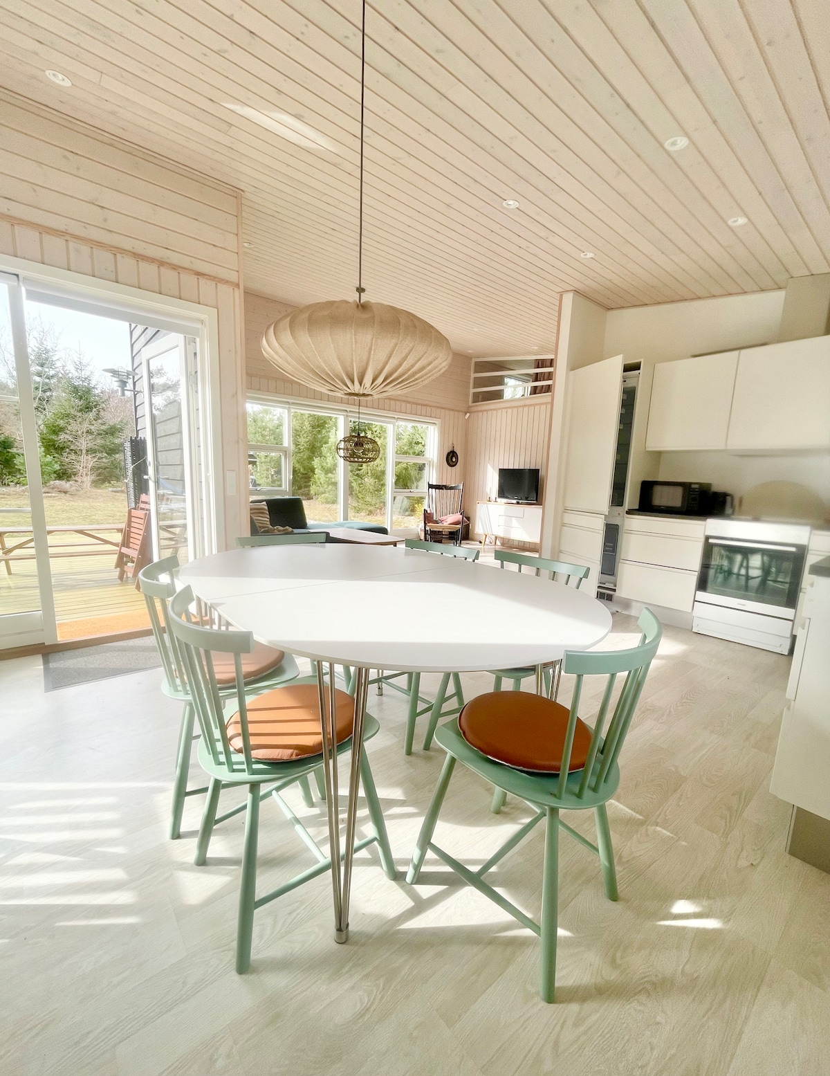 Huset er ideelt for familiehygge, dage ved stranden og i haven. Rådyrene kommer på besøg i haven, hvor bålstedet trækker på lange sommeraftener. Indenfor er 3 værelser til hhv. 2, 2 og 4 pers. Huset kan opvarmes om vinteren også via varmepumpe og brændeovn. Der findes bordtennisbord, 2 kajakker og cykler til fri afbenyttelse. Vandrerute 106 går næsten lige forbi huset og hyggelige Nykøbing Sj. er blot 3,5 km væk.