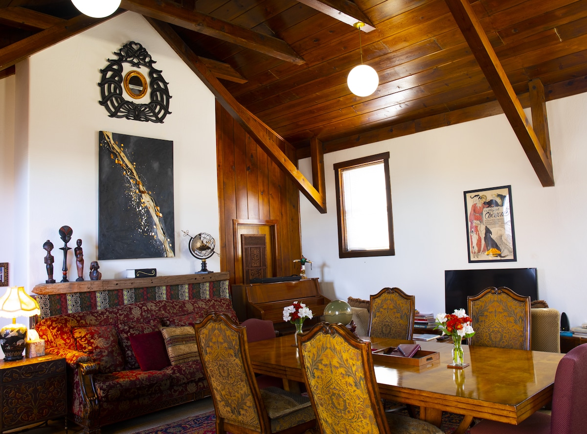 The Haven is a unique apartment in a cozy, repurposed church in the heart of Winslow. Its soaring wooden arches and adobe walls help deliver that getaway feeling you've been needing. The space sleeps 5 comfortably with 1 on a huge Victorian sofa. The Sanctuary, the Haven, and the Idyll may be rented together sleeping up to 10 in the three conjoined spaces subject to availability of all three separate units.