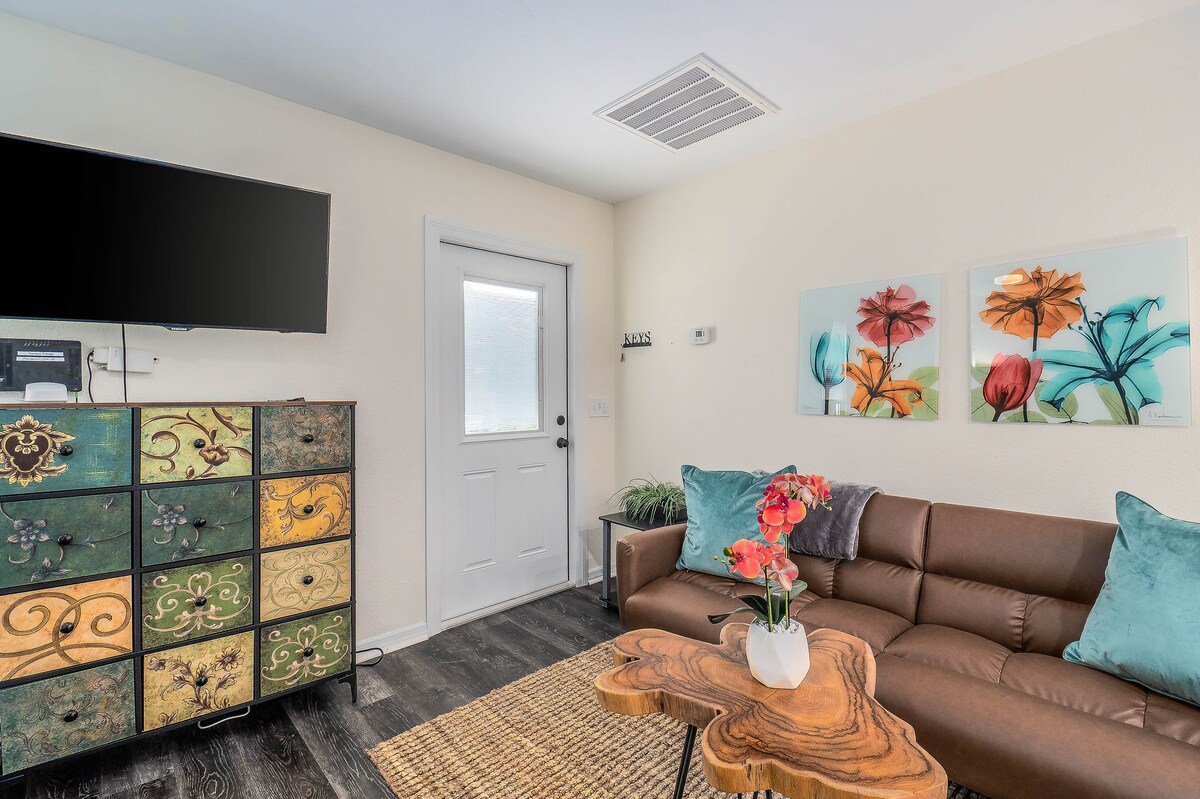 您的舒適度假地在Sunshine Studio等著您! 它位於萊克蘭(Lakeland)的中心,距離市中心、佛羅里達南方學院(1.4英里)和東南大學(1英里)僅幾分鐘車程。單間公寓配備齊全,讓您享受放鬆或冒險的住宿! 在設備精良的現代廚房中烹飪雙人晚餐! 在溫暖的庭院中享用一杯葡萄酒,為夜晚畫上完美的句號! 私人停車場距離您的門口只有幾步之遙!