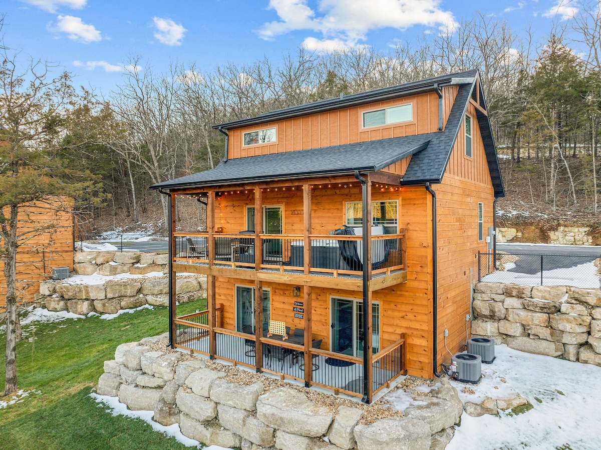 Spring & summer are calling! 🌞 Minutes from Silver Dollar City, this mountain-modern retreat on Indian Point brings thrill-by-day, chill-by-night: private hot tub, 3 fire features, sweeping Ozark views. Families, creatives, biz crews—everyone wins. Hit the park or lake, then stargaze by the flames. Prime dates vanish—book your epic getaway now! 🔥
