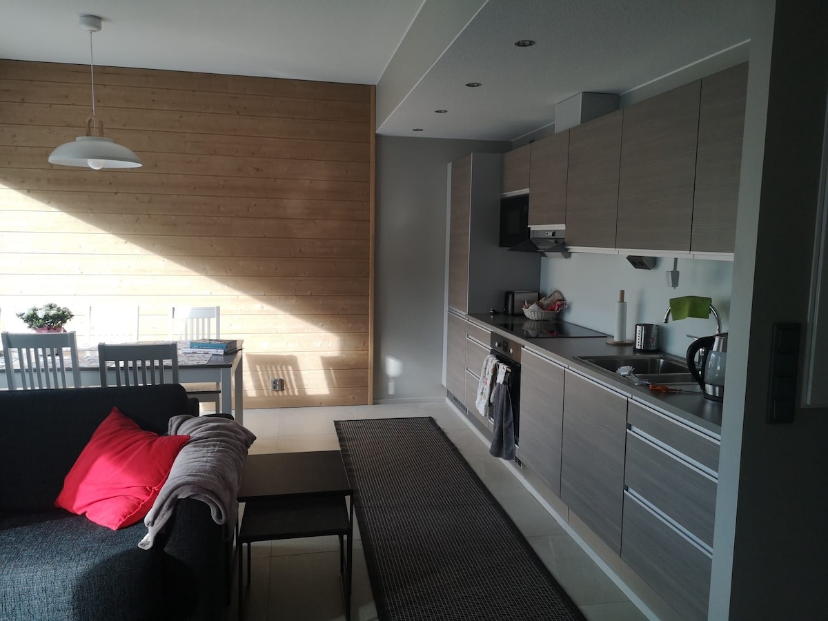 位於市中心的6/7樓單身公寓。所有服務都在樓下的Sykke購物中心,可從室內電梯進入。公寓內有桑拿房和大陽台,可俯瞰市中心。大雙人床和沙發床(140厘米)。夏季炎熱時空調。 樓下有大型車庫(B5座),兩小時免費停車(2小時)。 使用Moovy應用程式進行更長時間的租賃(每天24小時約20歐元)。 步行即可抵達公寓附近的劇院、拉赫蒂視覺藝術博物館Malva和Sibeliustalo。