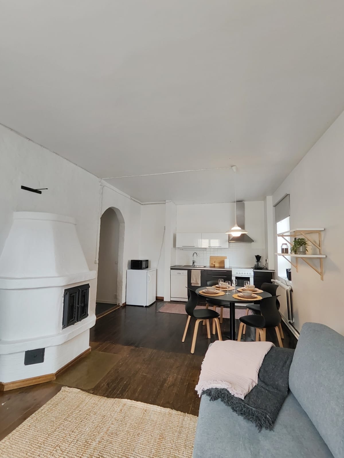 Uutuuskohde! Lähes kaikki huonekalut, vuodevaatteet, astiat,kodinkoneet, ym. uutta! huoneistossa vanhan talon tunnelma. Sijaitsee hiljaisella kadulla. Erillinen makuuhuone, jossa parisänky ja tupakeittiö vuodesohvalla. Makuupaikkoja yhteensä 4. Keittiössä astianpesukone, wc/kylpyhuoneessa pyykinpesukone. Takan puut lisämaksusta. 500 m keskustaan, 1.3 km rautatieasemalle. Ruokakauppaan 650 m. piha-alueella grillauspaikka. Kadulla ilmainen pysäköinti.
