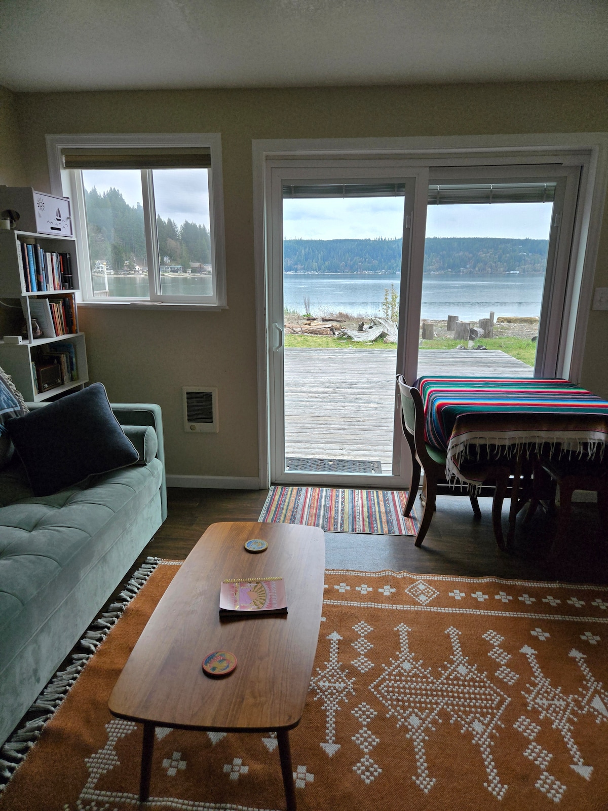 Originally built in 1973, the Rockland Woods Lodge was given a rustic-modern refresh in 2018. Located on a quiet, old growth 20-acre property, it overlooks peaceful Mission Lake and the Olympic Mountains—all just a scenic 60-minute ferry ride from Seattle. We host 10 to 20 artists-in-residence free of charge twice a year. Your rental for a retreat, reunion, workshop, or wedding directly supports this mission. Thanks for helping us support artists!