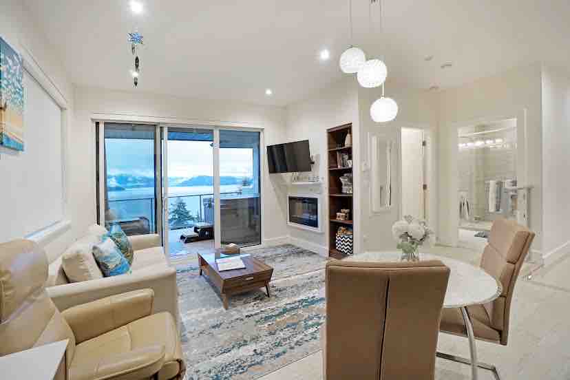 Located on the beautiful Sunshine Coast, it has stunning views of Howe Sound , the North Shore mountains, Keats Island and Soames Hill. The suite is new and has everything you need for a wonderful stay, including in-floor heating. Directly across the road is a trail down to beautiful Hopkins Landing beach merely a 5 minute walk. Located 2 minutes drive from the ferry and a 5 minute drive to the lovely seaside town of Gibsons , where restaurants, craft breweries and little shops will delight.