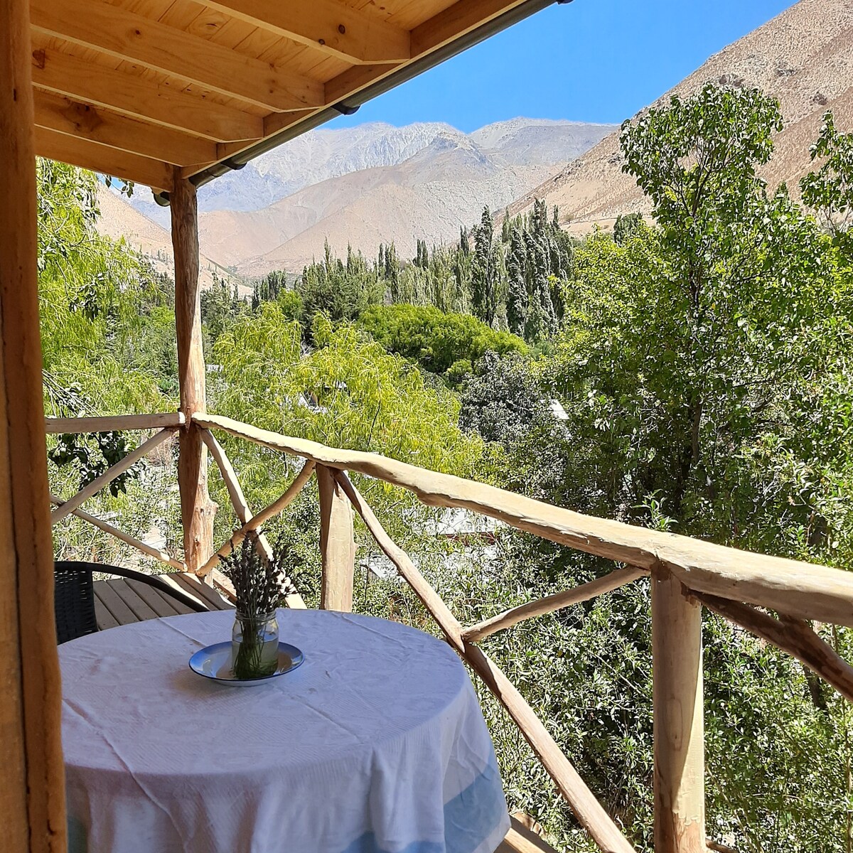 我們是幾位科學家,想開放我們的住所,讓您可以享受Del Valle del Elqui。 我們在Vicuña有一間私人小木屋( 4人) ,距離廣場2公裏。 大型綠色區域、兒童遊戲、有屋頂的停車位、私人泳池和野餐區。 我們有一個室外按摩浴缸(需額外付費)。 環境安靜,寵物友善。