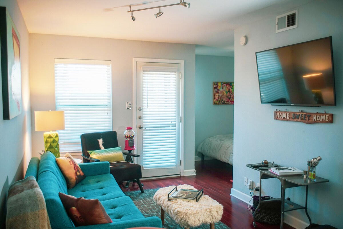 位於奧斯汀東市中心的全新、乾淨且井然有序的智能家居自動化現代公寓。 寬敞、高天花板、標準雙人床和全尺寸沙發床。 這是一個時尚的位置,有很棒的酒吧和餐廳。 停車方便。額外的半浴室。 高速光纖Wi-Fi。 Sonos音響系統和大螢幕電視。 非常適合市中心、德克薩斯州奧斯汀分校、伯德夫人湖( Lady Bird Lake )和節日。 非常適合兩人入住,但可容納四人。