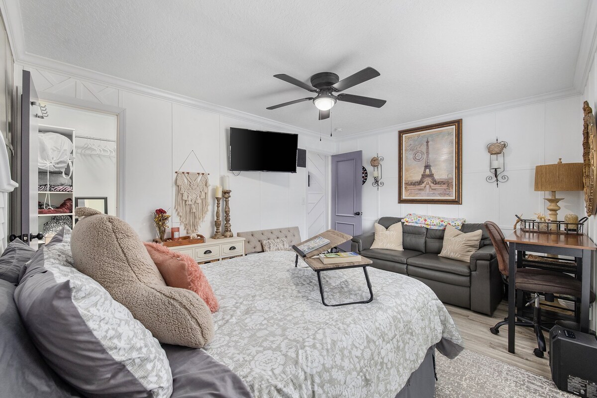 入住我們舒適的Magnolia Loft,這是一間位於我們的barndominium樓上的公寓,位置方便,就在22號公路附近-距離海灘僅30分鐘!配備: 1張加大雙人床、1張全尺寸床和1張拉出式沙發全功能廚房、1間浴室和起居區域 洗衣機/烘衣機。通過樓上的車庫進入,以及2個專用停車位 房客也可以共用戶外設施,包括日光浴露台、遊泳池和兒童遊樂區,非常適合放鬆身心或創造家庭回憶。