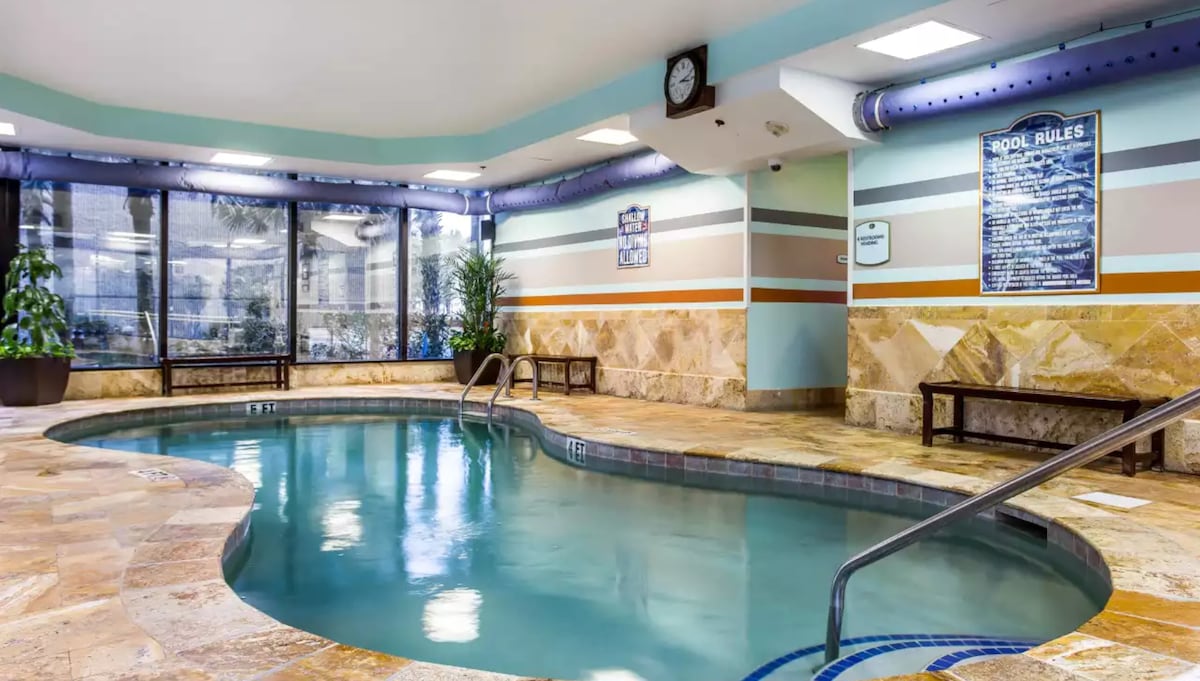 在默特爾海灘( Myrtle Beach )這座出色的海濱度假村享受優雅的體驗。 您會愛上大西洋景觀,從我們的度假村可輕鬆前往海灘,距離木板路僅兩個街區,距離SkyWheel僅四個街區。 我們半英裏內有各式各樣的餐廳和娛樂場所,我們有兩個泳池,配有兒童區域、漩渦、兒童活動中心、泳池酒吧和一家海濱餐廳。