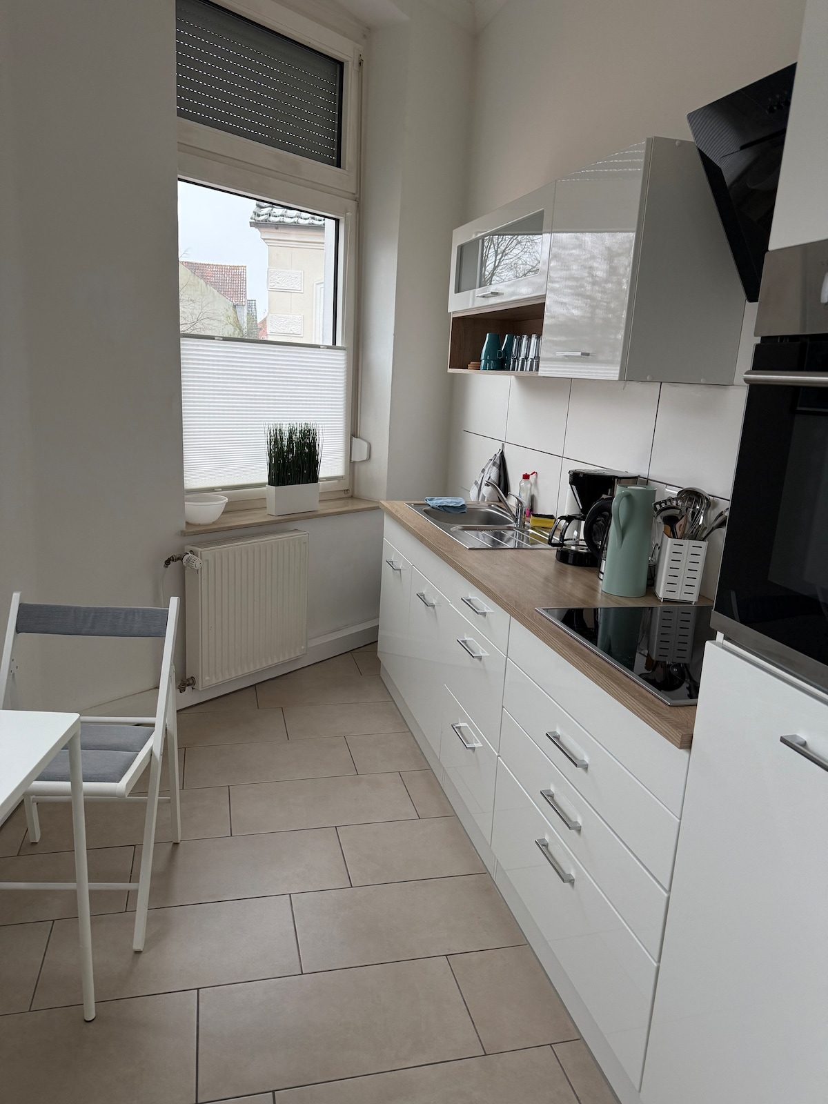 舒適、明亮且時尚的新裝修公寓: 現代化臥室 +1 間配有高品質彈簧床和智慧電視的臥室 客廳 + 舒適的座位和電視 設備齊全的廚房 + 配有舒適的用餐區和 4 把椅子 + 油、咖啡、茶、鹽、胡椒, 現代化浴室 + 配有淋浴間、馬桶和洗手台以及 2 扇窗戶 出行 + 免費提供停車位和自行車 + 可快速騎自行車、開車或搭乘巴士前往市中心。
