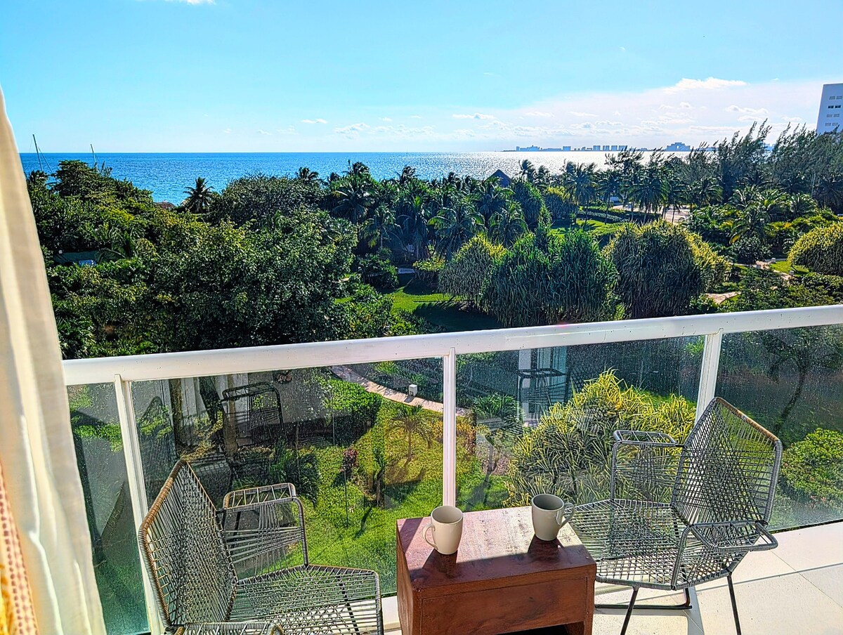 Espectacular departamento ubicado en exclusivo condominio frente a la playa 🏖️ Hermosa vista al mar Caribe 🌊, Isla Mujeres 🌴 y Zona Hotelera 🏙 Cuenta con un práctico balcón, ideal para disfrutar la brisa del mar y su mágico amanecer 🌅 El condominio cuenta con una alberca enorme 🏊🏼♀️ y acceso directo a la playa. Ubicación bien conectada con las mejores playas y actividades de la Riviera Maya. Incluye servicio de Concierge 🛎️ gratuito para ayudarte a organizar todo en tu viaje.