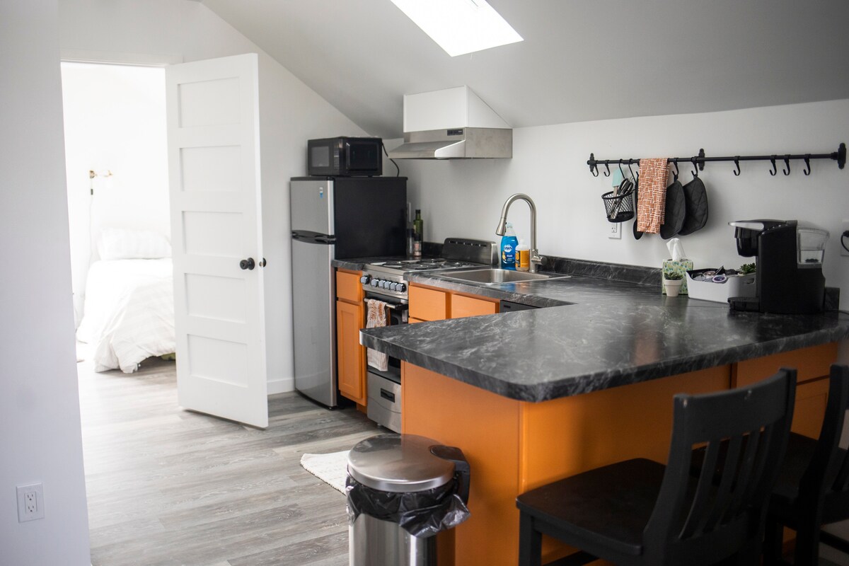 在我們500平方英尺的客用公寓中,在寧靜中放鬆身心,或體驗歷史悠久的卡盧梅特市中心的喧囂。 這間單間公寓位於獨立車庫上方,有獨立入口。 步行即可抵達酒吧、餐廳、咖啡館、麵包店以及當地滑雪和雪地摩託小徑,我們的客房是探索基威諾半島( Keweenaw peninsula )所有景點的完美去處。 如有需要,房客可以全天候聯絡房東,因為我住在獨立主屋。