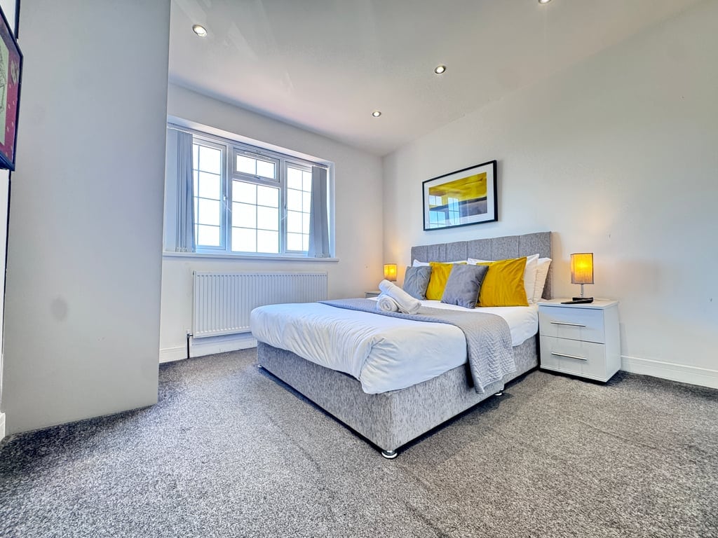 Spacious double room within a 2 bedroom house, tucked in the corner of a quiet cul-de-sac located just 3 miles from LHR and just a mile from Feltham Station, from where you can catch a train directly into London. Free parking directly outside house. The room is clean with plenty of storage, a TV & WIFI. A foldable work station ideal for laptop use. Towels are available on request for a £5 fee. Use of the kitchen, upstairs bathroom & another toilet downstairs.