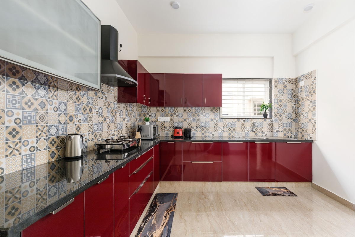 NO PARTIES LOUD MUSIC ALLOWED. APARTMENT ASSOCIATION IS VERY STRICT ON THIS Indulge in our 3-bedroom Airbnb in IndiraNagar, Bangalore, each room with a TV featuring Amazon Prime & Netflix. Relax in the living room with a 65-inch 4K TV and AC. The kitchen is fully equipped with pots, pans, fridge, dishwasher, microwave, and a washing machine. Enjoy the convenience of 2 attached bathrooms and one common bathroom and daily housekeeping for a comfortable stay.