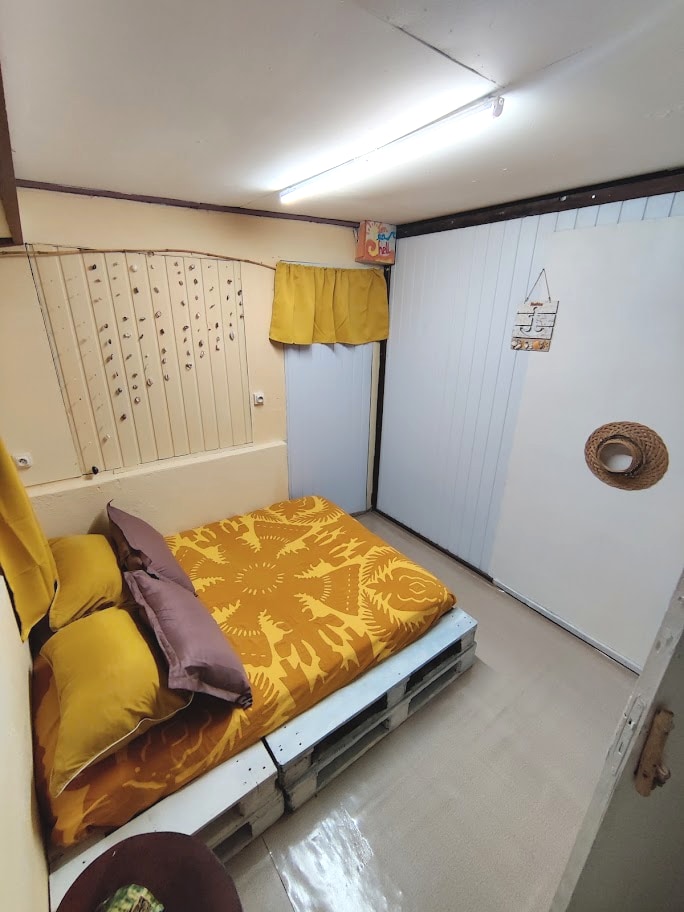 這個小型獨立住宿,可容納1至2人, 就在美食藥房後面,靠近所有商店 以及島上主要村莊的奢華海灘。 在圍欄花園中,毗鄰另一個出租單位 可供4人入住。 廁所和淋浴間、冷水、外觀 房間內有洗手臺區域。 沒有炊具,只有微波爐和迷你冰箱。 140 x 190的雙人牀,舒適,配有蚊帳和空氣攪拌機。 辦公區域或餐桌。