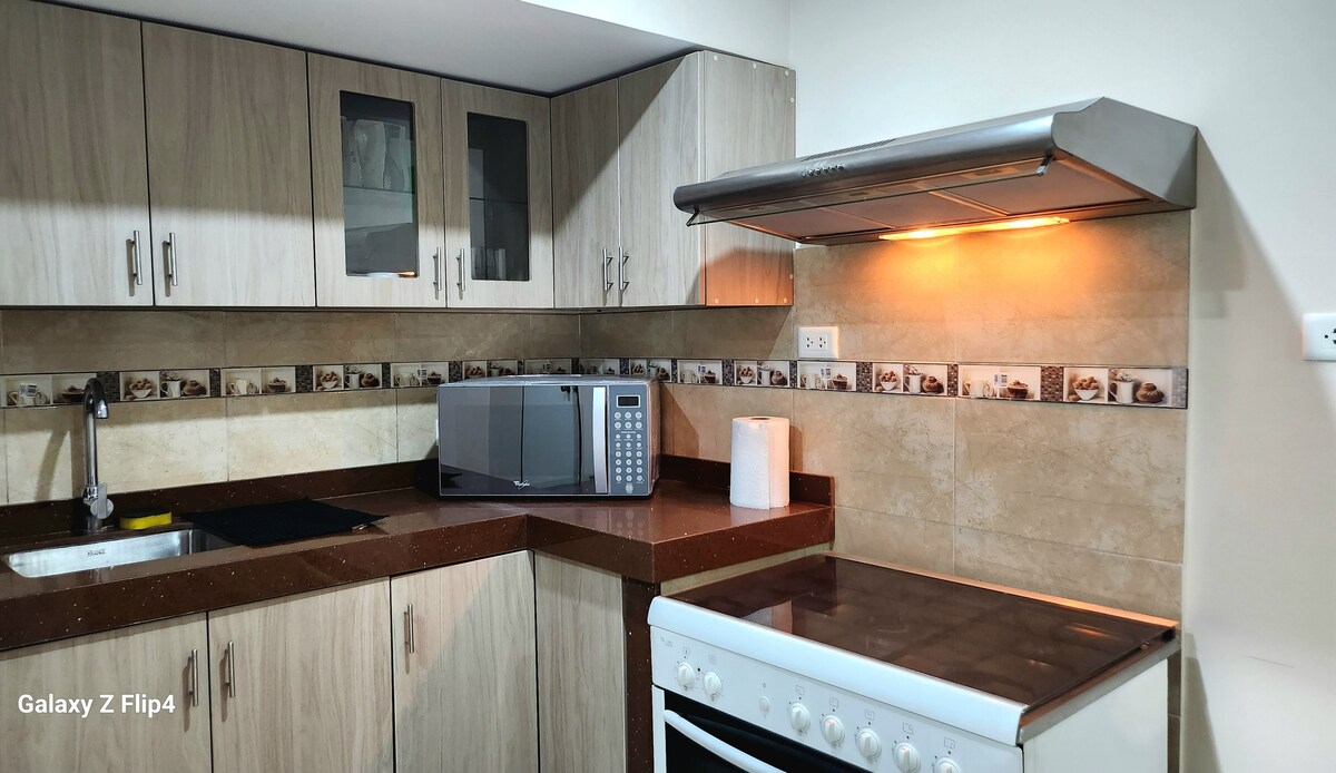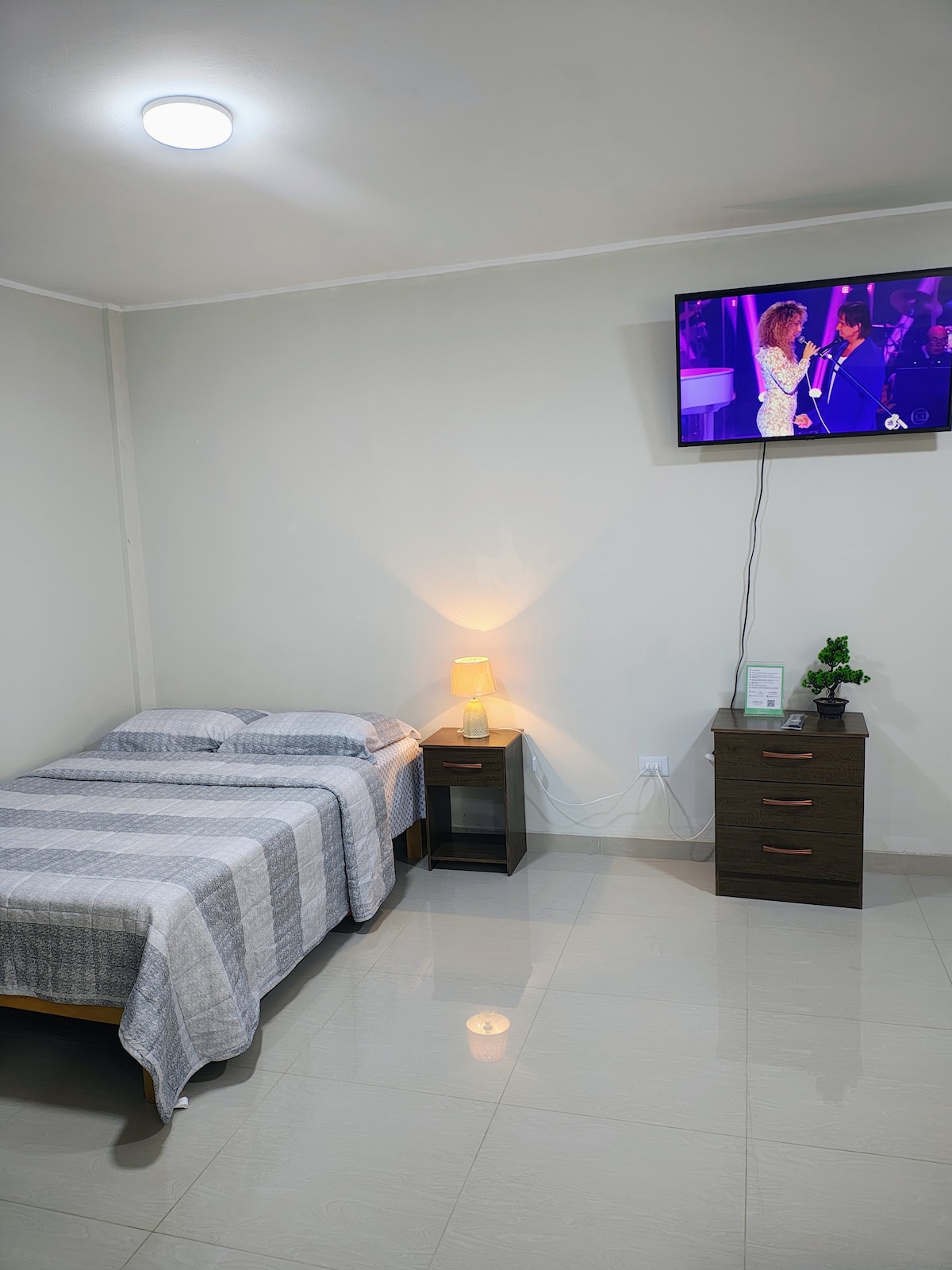 Moderno, espacioso y acogedor estudio, con todo lo que necesitas para una gran estadía. Todo incluido ( Servicios, internet, wifi, Kitchen, cocina, refrigeradora, microondas, menaje, comedor, jacuzzi, baño completo (agua caliente todo el tiempo), cama Queen y lavandería), cuenta con aire acondicionado . Cerca Av. principales, instituciones y otros. perfil de huesped: que gusten vivir dentro del respeto, limpieza y tranquilidad. con aire acondicionado.