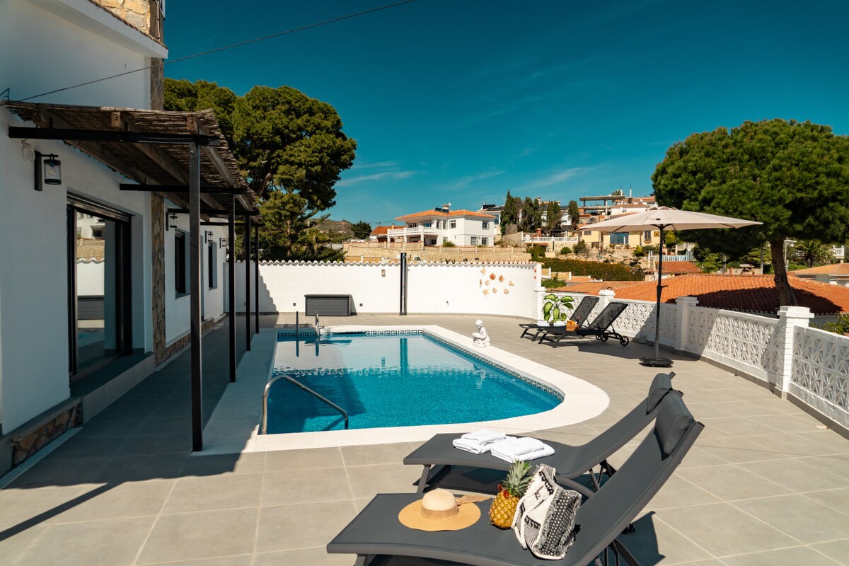 獨立式新建別墅,專為尋求各種舒適設施的家庭和朋友而設,獨立式花園和私人鹽水泳池,尺寸為4米x6米。佔地300平方米。 有3間非常棒的臥室、寬敞的客廳和通往花園的出口,景觀非常好,廚房設備齊全,配有儲藏室。配備所有設施。