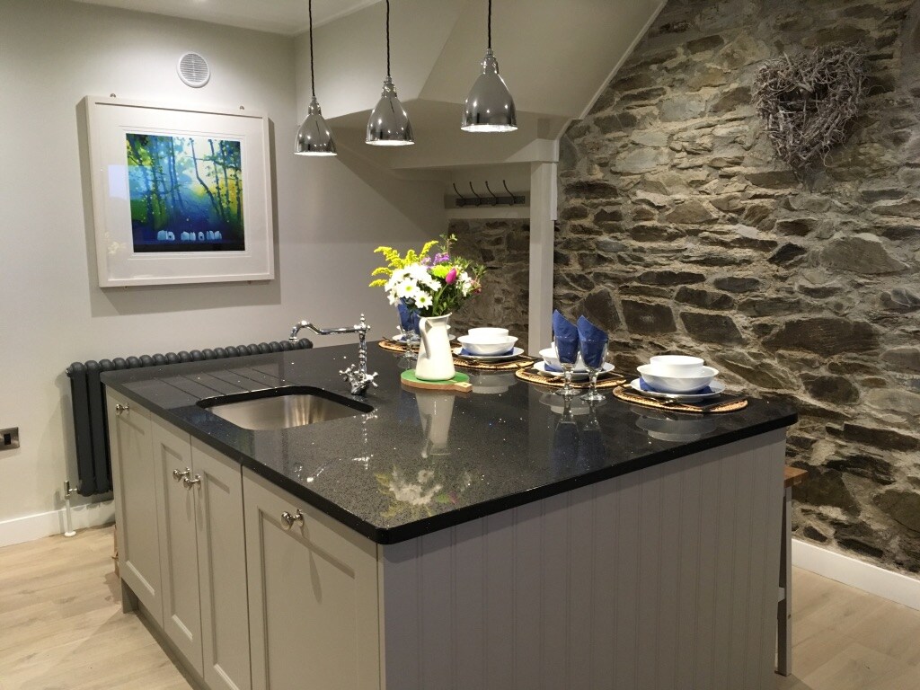 美麗的傳統石造穀倉改造成現代/工業/鄉村生活空間,帶有古怪的觸感。 位於威克洛山脈的田園詩般的山麓,位於威克洛路,配有開放式廚房/客廳/用餐空間、閣樓臥室和寬敞的淋浴間。 擴建部分提供額外的靴子室/鄉村風格的浴室/廁所和鋪設的庭院。 區域由上下草坪組成,佔地半英畝。 步行即可抵達鄉村酒吧。