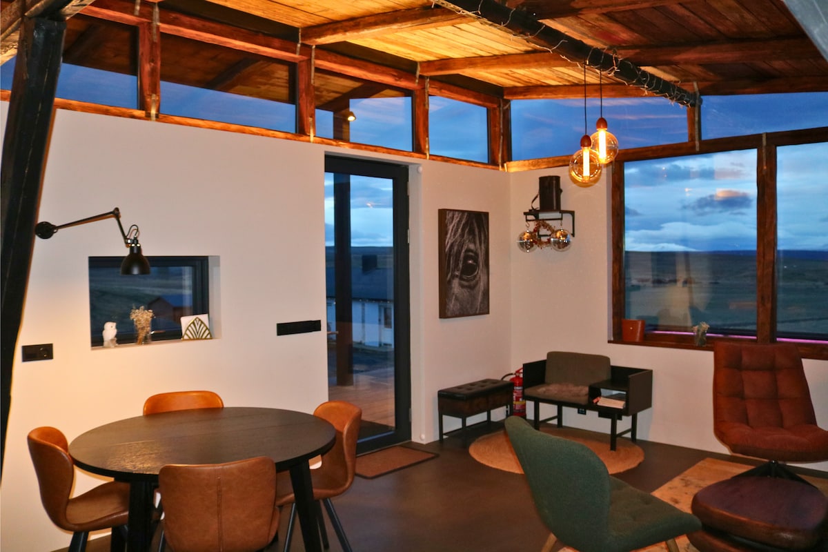 Now open for bookings – stays from May 1st, 2026 Set in the peaceful Icelandic countryside, Valey is surrounded by open fields, fresh air, and mountain views. Icelandic horses often graze just outside the house, creating a calm and authentic rural atmosphere. Despite the quiet setting, the property is only minutes from Hvammstangi with restaurants, cafés, and essential services nearby.