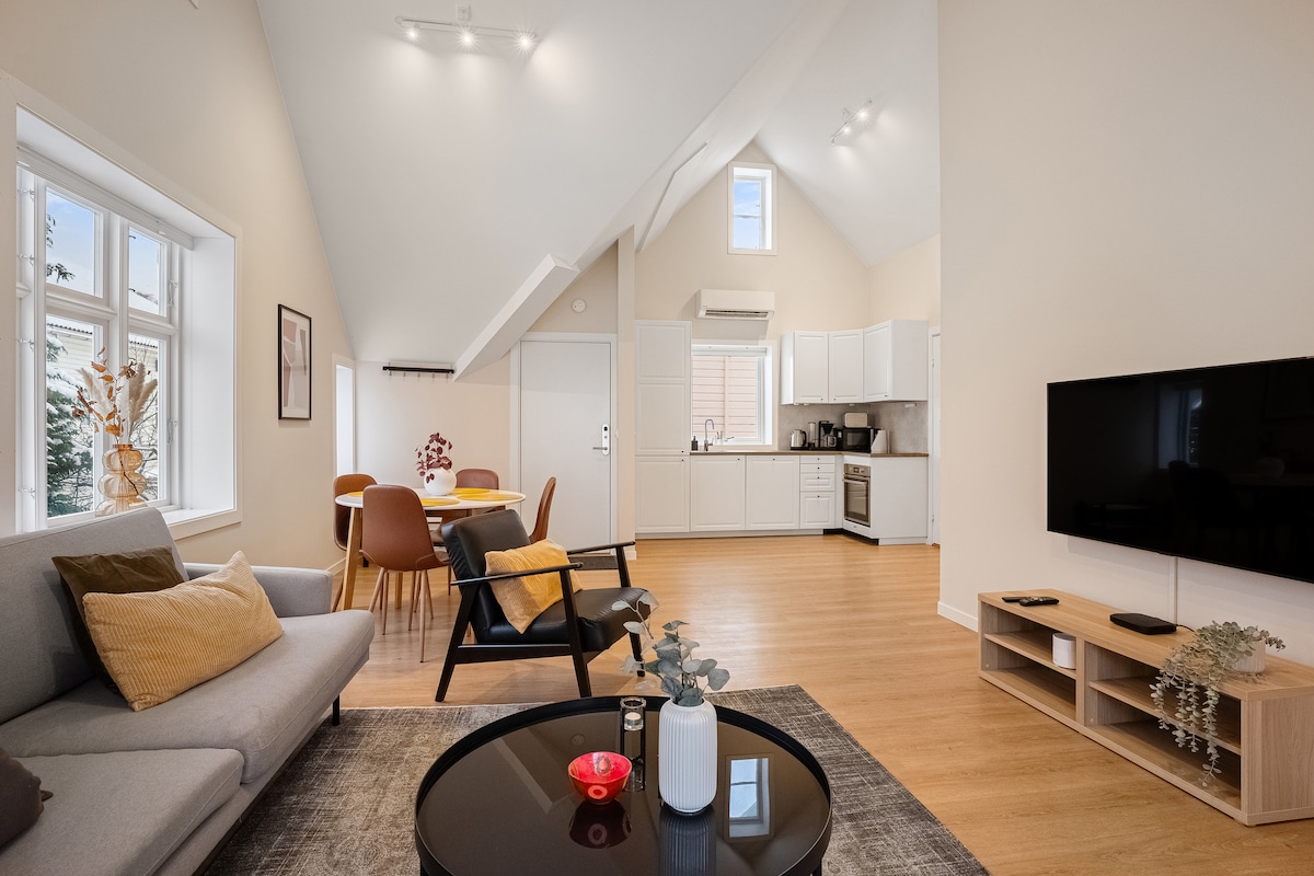 房源經過全新裝修,位於斯塔萬格( Stavanger )的中心位置,可直接連接市中心的所有景點。 附近有Breiavatnet、火車站和巴士總站,步行即可抵達許多餐廳、豐富的文化優惠和徒步旅行機會。 後院有共用露臺。 通風的客廳位於通往實用廚房的開放式解決方案中,客廳還有一個可折疊的梯子,可通往約6平方米的閣樓/壁爐。