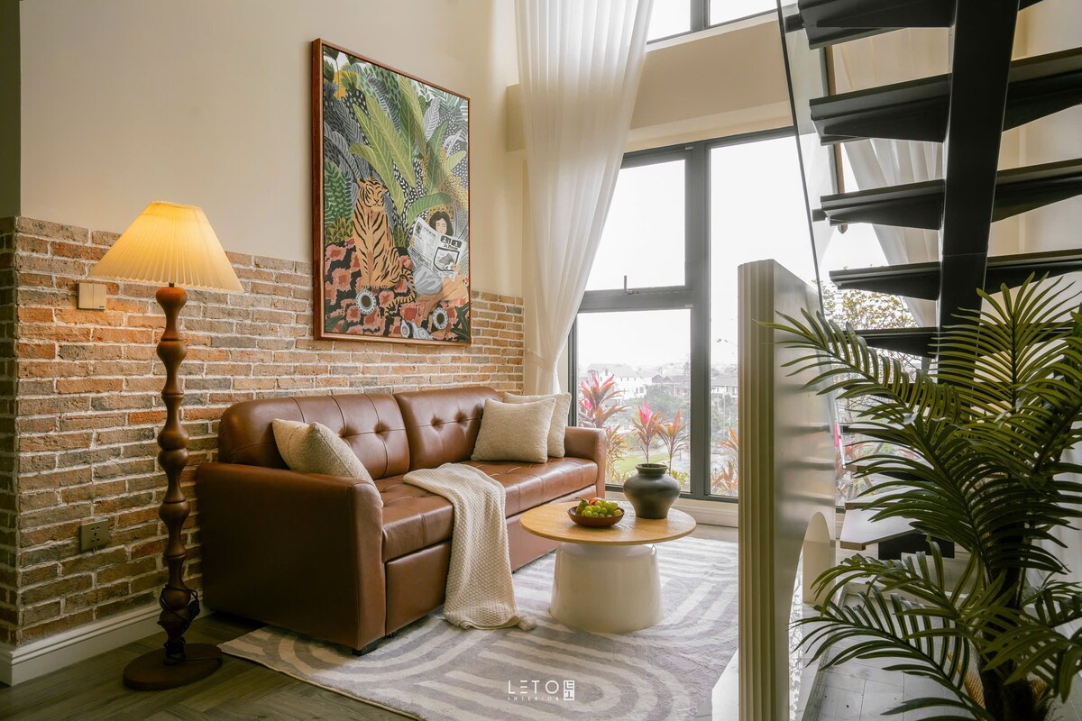 欢迎来到我们位于R2三楼的农舍风格复式公寓,位于Ecopark中心,靠近天鹅湖!地理位置优越,步行便利。温馨空间:1间卧室、1个沙发床、2个卫生间(含浴缸),适合情侣或4口之家。配套齐全:80寸投影仪、43寸电视、Harman Kardon音响、电炉、微波炉、洗衣机、绿意阳台、强WiFi、舒适办公区。