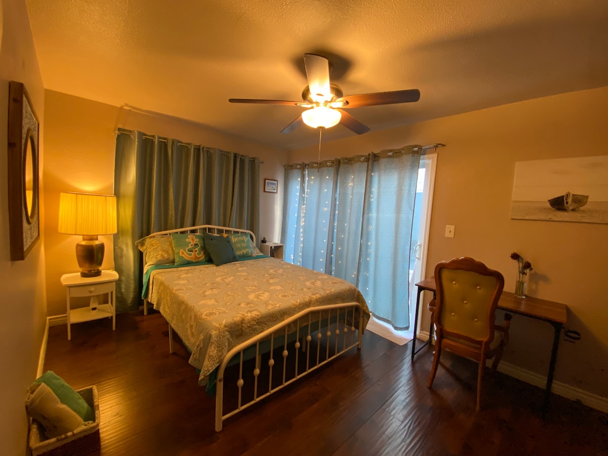寬敞的 1 張床,步行 10 分鐘即可抵達海灘,免費停車