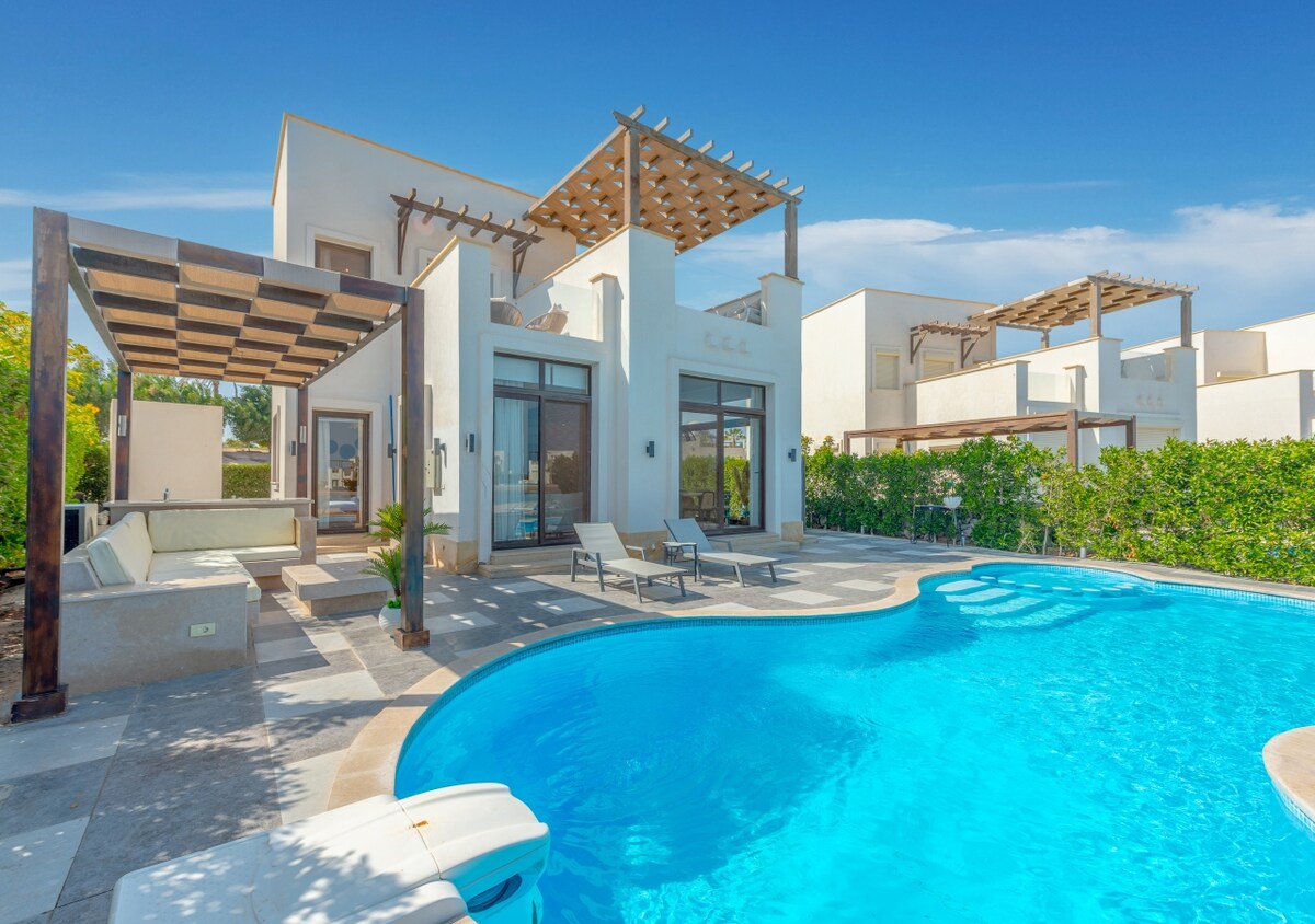 This stunning 4-bedroom villa in Cyan, El Gouna, offers a seamless blend of luxury, comfort and nature. Designed for those who appreciate elegance and privacy, it boasts a private heated* swimming pool, outdoor lounge area, direct lagoon access, a brand-new private sauna ♨️ and remarkable views.