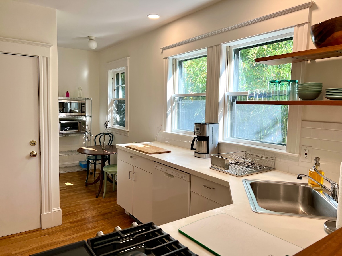 這間私人2間臥室/5間房間的公寓寬敞舒適,位於Porter和Davis廣場附近的經典「三層」一樓。 公寓配有全套廚房、客廳和餐廳,並可使用共用洗衣房。四周環繞著本土植物花園和成熟的樹木,這是探索劍橋大學的絕佳基地,或更長時間的公休假住宿。哈佛廣場(Harvard Square)距離一個T站,或騎自行車10分鐘/步行25分鐘。