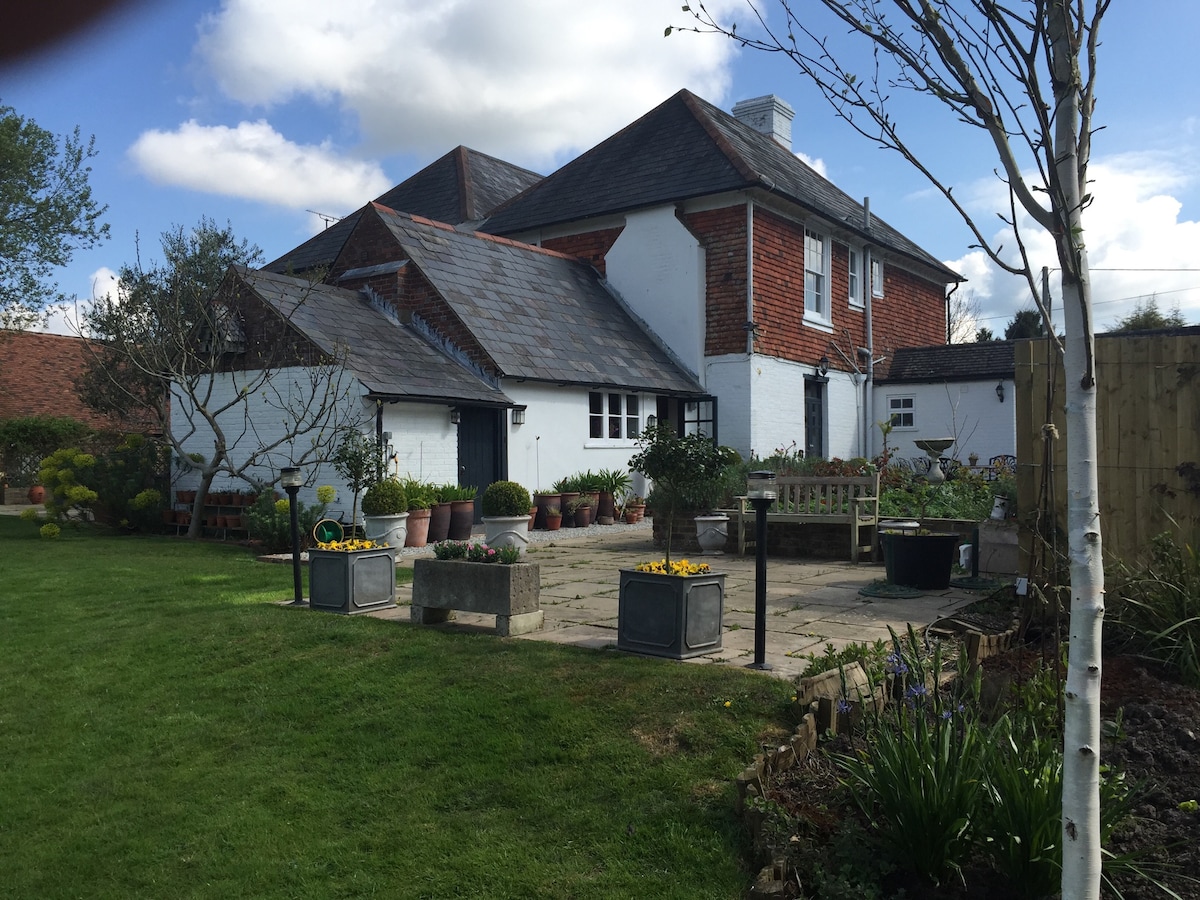 The Stables坐落在15世紀維爾登大廳房屋的美麗區域,是一座令人愉快的橡木框架小屋--一個隱蔽而寧靜的兩人天堂。 有一間客廳,配備備超級舒適的木炭牀,漂亮的臥室配有一張奢華的4000口袋特大牀和高品質的埃及棉麻牀單。 外面是一個僻靜的花園,有露臺,七十英畝的林地和牧場供您漫步;我們的居民拉布拉多將與您同在!