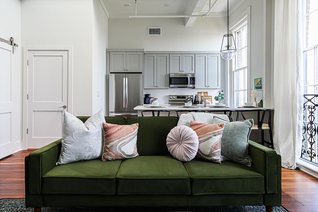 入住我們位於1857年歷史建築頂樓的浪漫河濱公寓!這間 1 臥室/1 浴室度假屋非常適合情侶入住,配有原始的心形松木地板、寬敞的客廳、可拉出的雙人沙發床和配有櫃檯座椅的全套廚房。享受現代化的設備與服務,包括快速WiFi、室內洗衣房和附近車場的停車通行證!精緻的設計和無與倫比的中心位置,您將置身於歷史悠久的薩凡納的中心! SVR-02996