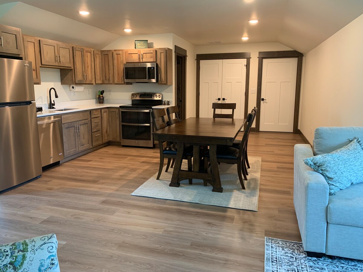 在這個設計時尚又安靜的空間中好好放鬆身心。 寬敞的1200平方英尺獨立單間公寓,已改建為完美的良好能量生活空間! 它坐落在一個5英畝的私人房源上,距離博兹曼市中心10分鐘。非常適合情侶或單身人士入住。 在室內設計中投入了大量的愛和細節。 乾淨、開放、現代風格。 從滑動玻璃門到您的私人戶外露臺,您可以欣賞山景。
