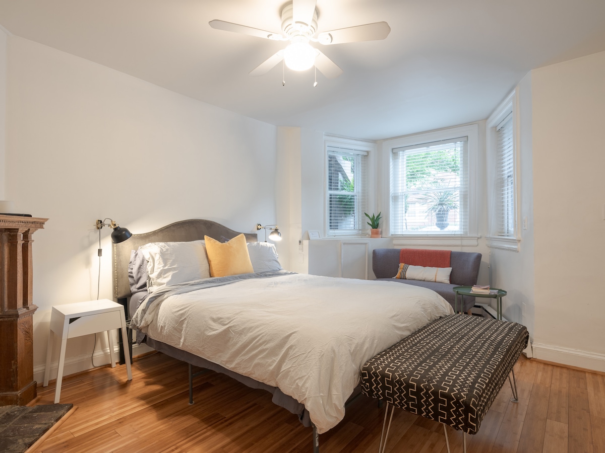 入住舒適的獨立一樓單間公寓,配有大型海灣窗戶和古董細節。理想地位於國會山歷史區 - 步行前往東部市場,取得早餐的雞蛋,並細細品味週末跳蚤市場。在商場騎共享單車參觀紀念碑和博物館。漫步到H街享用雞尾酒和晚餐。或者品嚐聯合市場的小吃攤。提供超快的WiFi、自助入住和舒適的床鋪等便利設施,讓您行輕鬆自在。