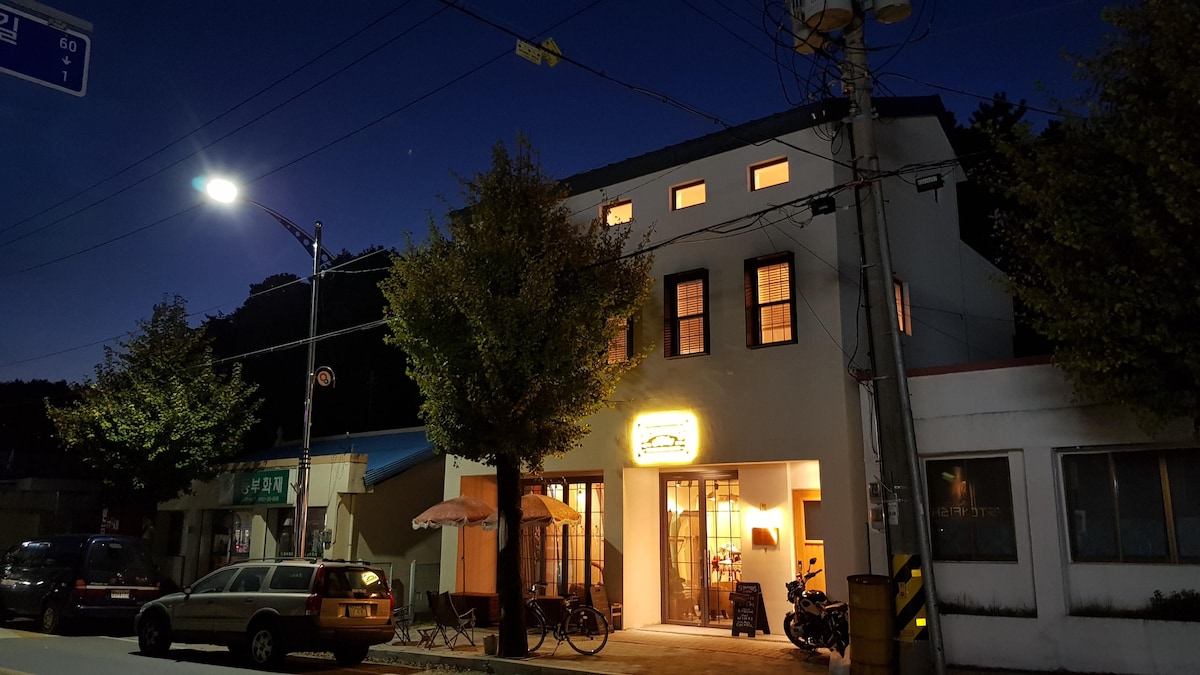 你好我是Sabujakjabujak我們的住宿位於 一個步行5分鐘即可抵達Jamido Beach/Dongsan Beach的地方。此外,院子裡有一張大牀,因此您可以在美好的天氣裡享用烤架和飲料,享受郊區時尚氣氛。 這裡是陽光浴或衝浪的好地方,也是在秋冬樹下掛掛的溫馨地方。 然而!因為它是一棟舊的農村房屋和一片田地,所以它沒有乾淨的感覺,例如新建的退休金或酒店。我們努力管理它,以便它可以在舒適的狀態下使用。請注意住宿選擇:)