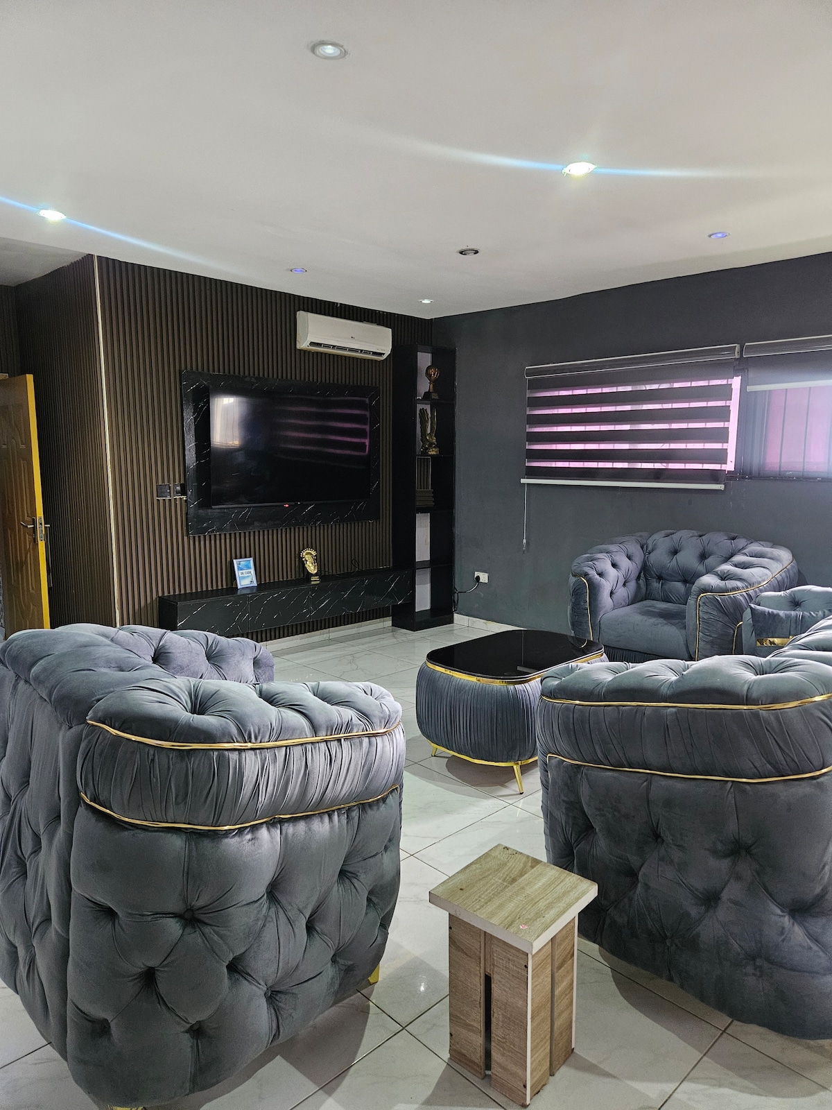 This unique place has a style all its own. It’s a 1-bedroom and sitting room serviced apartment. Amenities include ; - 24/7 power supply - Smoke extractor -Microwave - CCTV camera - DSTV/Netflix -TV console -water heater - snooker board - table tennis - washing machine - Large parking space - Reading chairs and tables - Gas cooker -Freezer