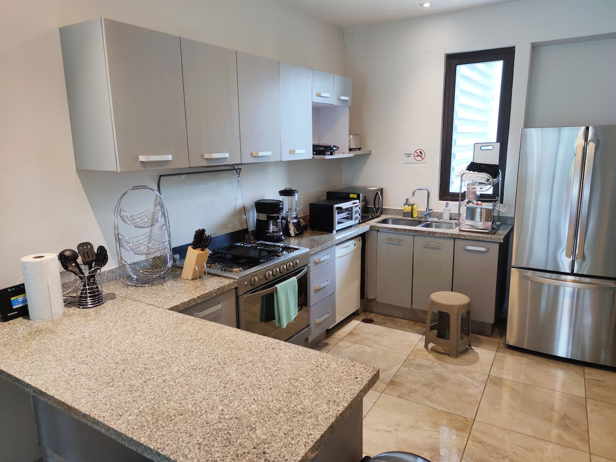 全新、寬敞、位於市中心的豪華公寓。 此處地理位置優越: 距離米格爾·阿萊曼海岸 (Miguel Alemán) 一個街區。 您可以步行前往海灘。 距離以下地點 5 分鐘: La Diana Cazadora、畫廊、會議中心、高爾夫俱樂部、Condesa 和 Costa Azul。 水上公園、餐廳、酒吧、海灘俱樂部、沃爾瑪、La Escénica 和著名的 Baby'O。 3 間臥室、2 間全套浴室、泳池和公共區域。 配有烤肉架、桌遊、桌上足球、充氣遊戲。
