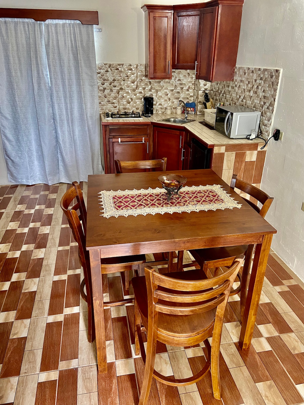 Enjoy comfort, privacy, and convenience in this private 1-bedroom home at Ruth’s Guest House. The space is fully self-contained and thoughtfully designed for a relaxing stay, featuring a fully equipped kitchen, air-conditioned bedroom with TV, Wi-Fi, hot/cold shower, and secure gated parking. Guests can also unwind outdoors under the shared shaded umbrella seating area. A washer and dryer are available upon request for a small additional fee.