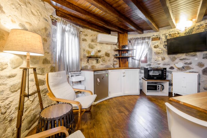 The Windmill in Ierissos is a historic building carefully restored to its former glory in the 2006, with a unique aesthetic, natural materials, still possesing the good energy of people who were working there for life’s bare essentials for more than a century, now turned into vacation home. It is ideal for young couples or families looking for special place to relax. The view from the property, which overlooks the bay of Ierissos provide a lovely environment for a great stay and luxury holiday.