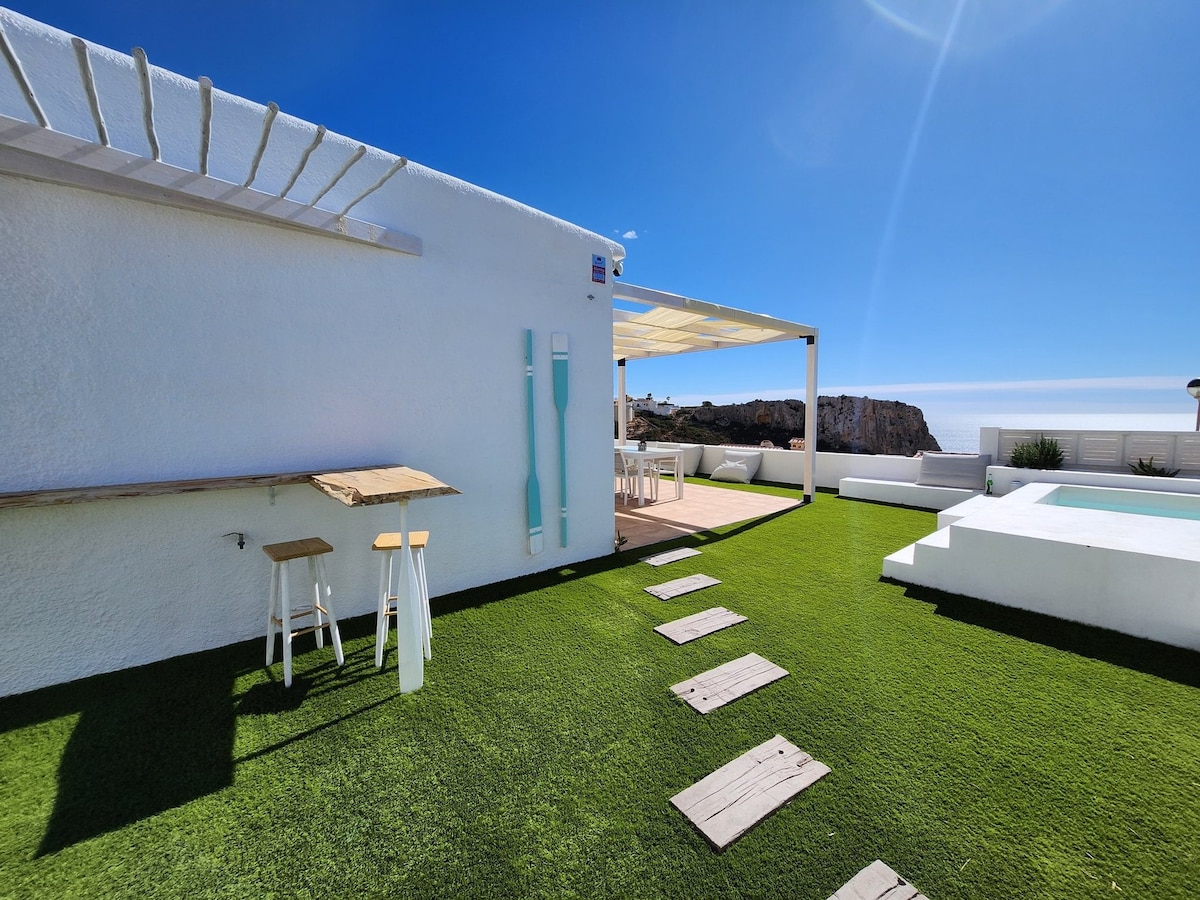 Yes, not kidding, you're gonna rent the SEA. And you'll find the PEACE. I PROMISE. And you will also enjoy a majestic Cliff. Where the waves crash. And sometimes very strong. And they sound a lot. And you'll hear them all the time. Full Relaxation. 12 min. walk from the Campomanes Marina. And since I know you won't want to leave the Terrace. I'm giving you FREE. My parking spot. In the center of Altea. So you can go whenever you want. You won't want to leave. See you soon