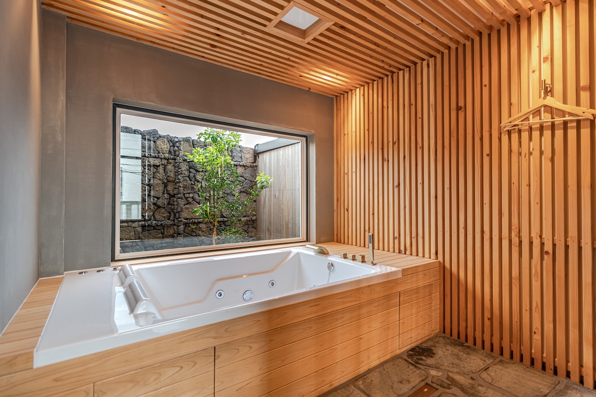 Mudita Jeju is a cabin where you can enjoy every element of the space including the yard and veranda. Please note we don’t have a TV at Mudita Jeju. Instead, an in-house stone hot-tub and tea will be prepared to help you unwind. I hope your time at Mudita Jeju will help you nourish your senses and find your own rhythm.