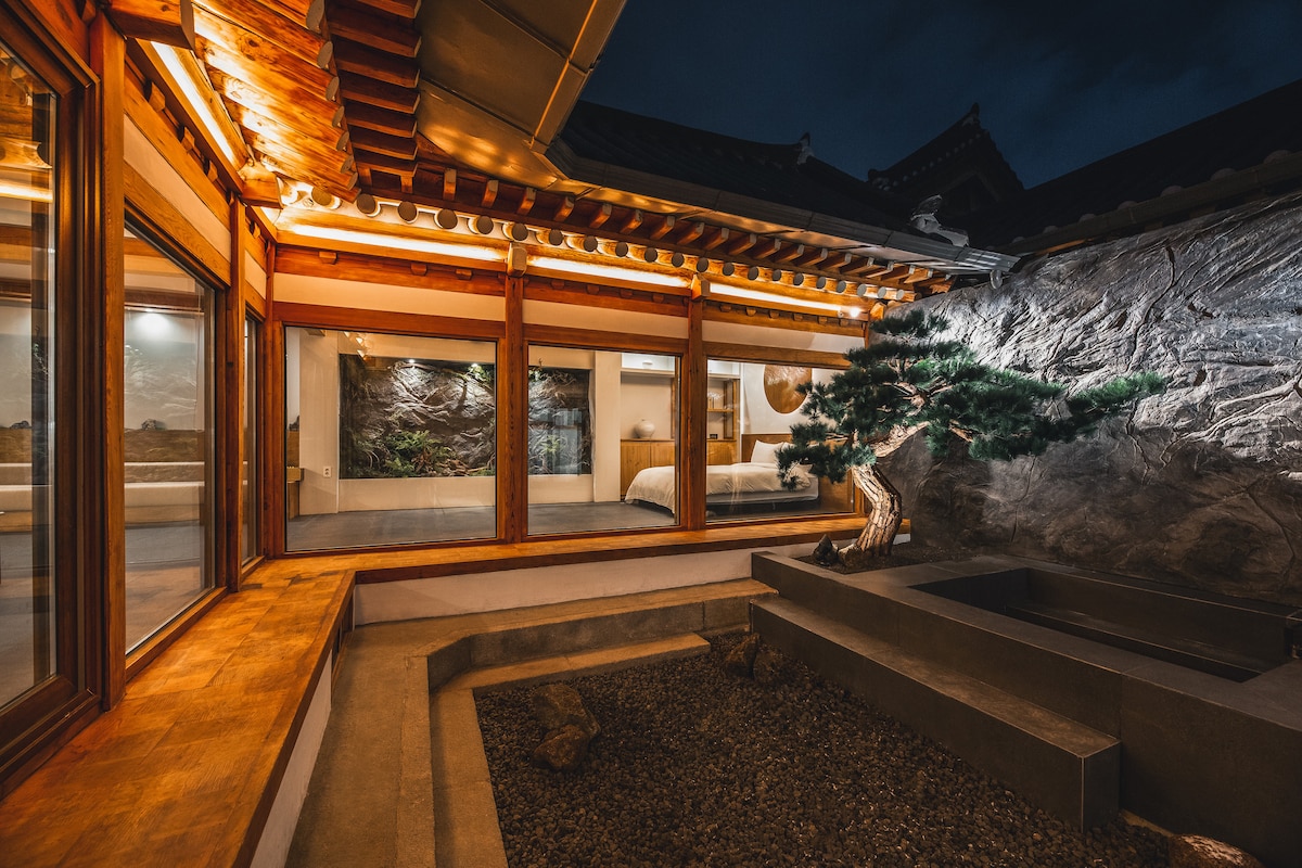 The Noble Hanok是一个传统韩屋与现代感官相融合的空间。 外观呈现古老的贵族家居风格,内饰却又现代而优雅,这个空间兼具广阔的客厅、中央厨房和舒适的卧室,让您在体验韩屋风情的同时也能享受便捷的休息。 坐在窄长的走廊上,眺望庭院,或在星空下欣赏夜景,体验传统与现代交织的宁静韩屋之美。 坐在走廊上,眺望庭院,或在夜空下欣赏星星,享受韩屋的宁静之美。在The Noble Hanok,体验传统与现代完美融合的特别时光。