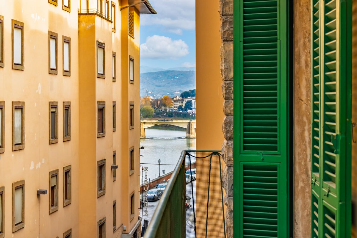 This apartment, on the third floor of a building near the Ponte Vecchio and the Arno River, in the land of Florence. It has an unparalleled view of the city center on the central shopping street and the Holy Trinity Square. It is less than a 10-meter walk to the Cathedral of Santa Maria dei Fiori, Piazza della Repubblica, Piazza della Signoria and the Uffizi Museum. The apartment is located in ZTL but is only a 10-minute walk from the S. Maria Novella train station.