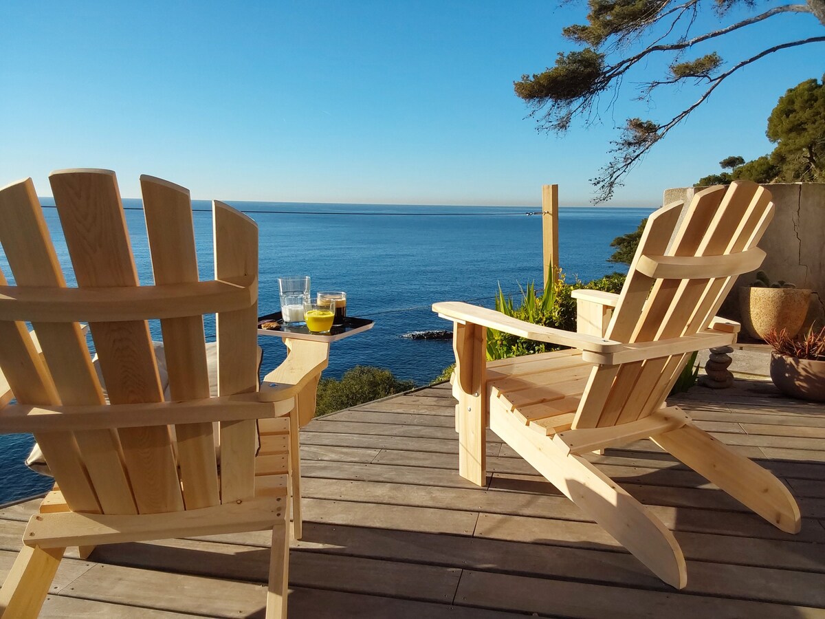 房子位於海邊,彷彿在船上,海景一覽無遺,保證安靜。 私人泳池(7.50 x 3),配備逆流設備,步行 2 分鐘即可抵達海灘。 最近翻新的房子,設施優良