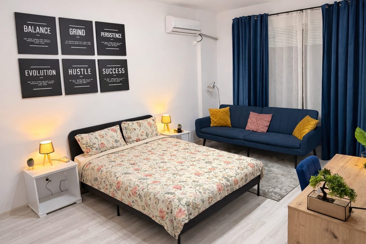 Step into the Bumblebee Apartment, where comfort meets chic urban living. This beautifully designed one-bedroom apartment in central Bucharest accommodates up to four guests, ideal for couples, families, or business travelers. Enjoy contemporary design, spacious rooms and top-notch amenities, the perfect blend of comfort and convenience and a prime location near the Romanian Athenaeum, Royal Palace and Calea Victoriei, offering the best dining, entertainment, and cultural landmarks in Bucharest.