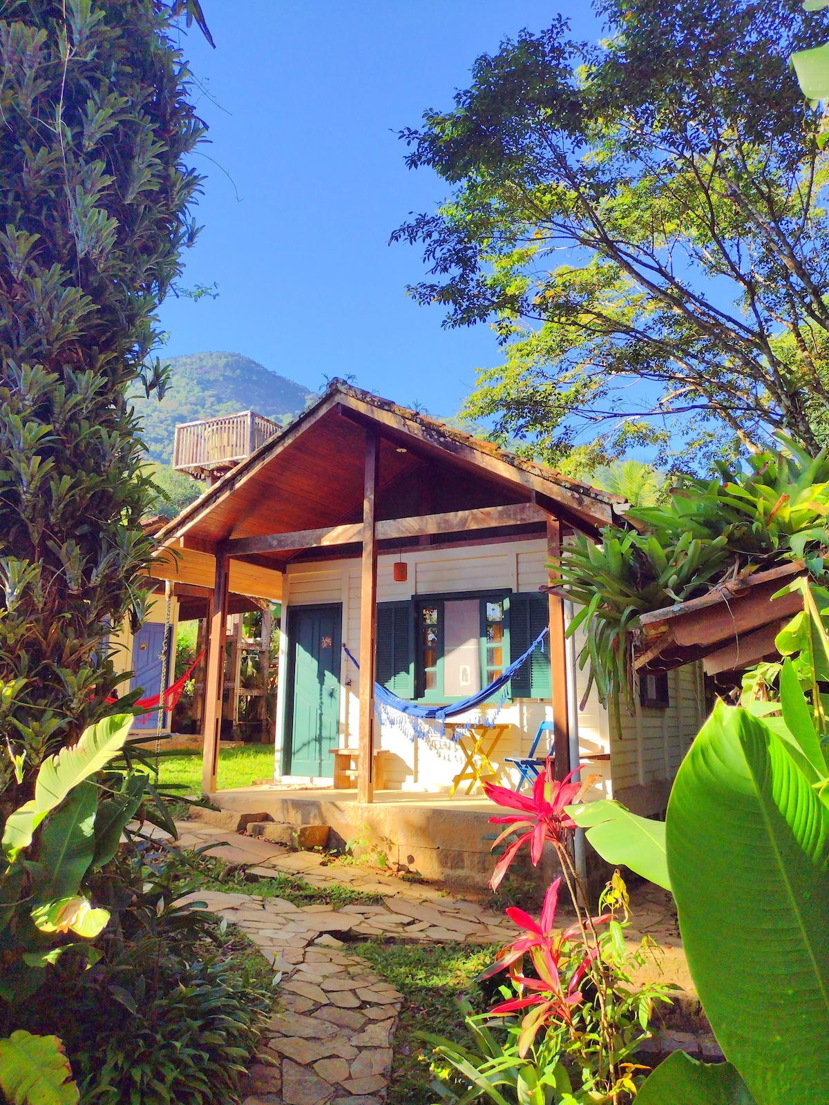 Aldeia is a small condominium situated 9 min. walk from the beach, on Vila do Abraão's upper part, next to the forest, in a quiet place where you sleep to the sound of crickets! There are 5 cottages that divide a large garden with trees, a refreshing shower and mountain view. The 100MB optic fiber internet connection is stable, which allows virtual meetings and remote work.