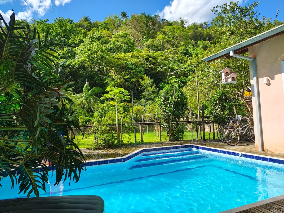 - Casa belíssima, a 650m da praia de São Francisco - Piscina, rede, terraço com vista para o mar em meio à Mata Atlântica - Lareira para as noites frias - Quatro dormitórios que acomodam até 9 pessoas - Churrasqueira e cozinha completa para o preparo de suas refeições - TV smart com Sky - Roupas de cama e toalhas inclusas - Cadeiras de praia e guarda-sol - Garagem para 2 carros - Camareira e cozinheira podem ser contratadas à parte