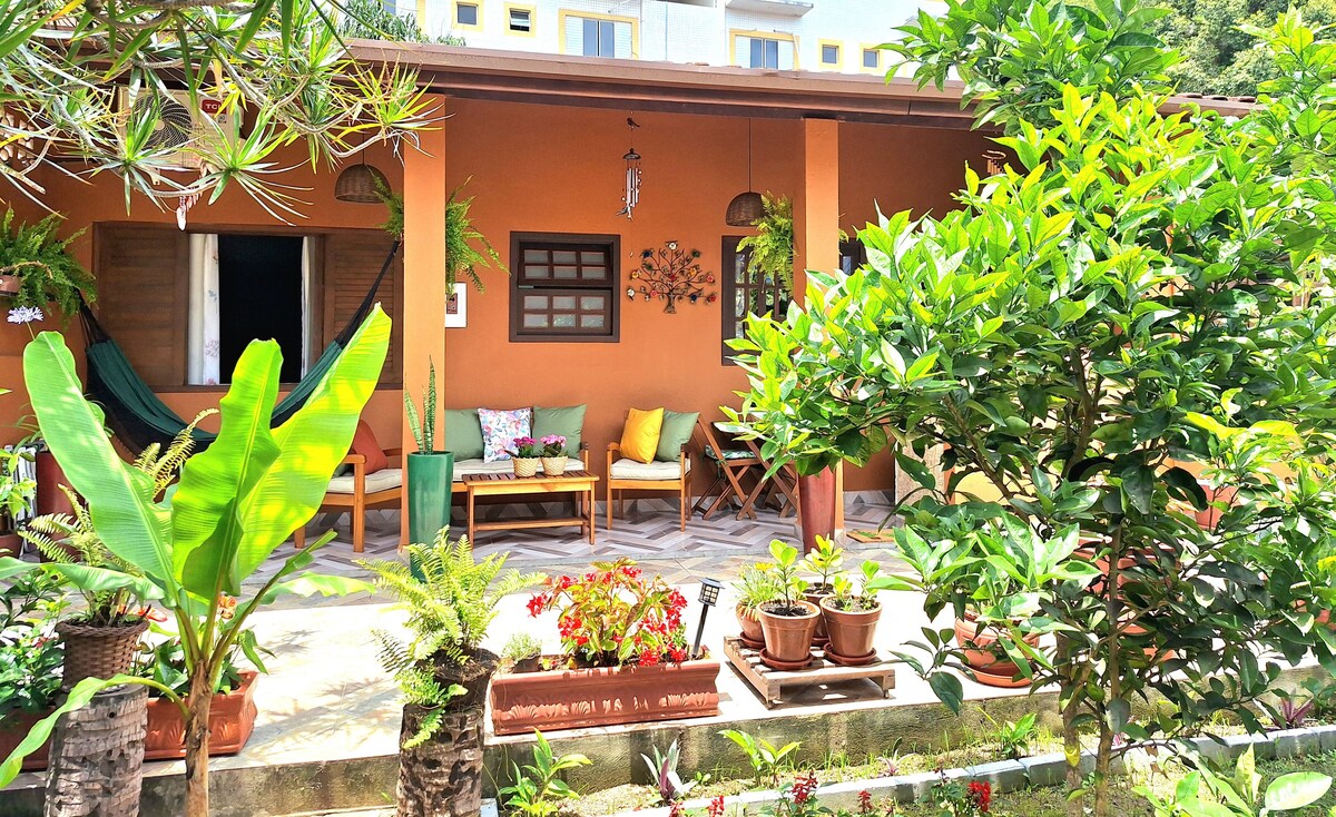 這棟房子距離渡輪800公尺,是一顆寶石:建於70年代,坐落在擁有數百年歷史的軟管的樹蔭下,配有雙磚牆和ipê木材的夾層。 一切都經過翻修,歡迎在大自然中尋找舒適的旅客! 氣候和設備齊全的廚房,有三間臥室、兩間套房。 有三間大廁所。 客廳配有智慧電視,粉紅色的peroba桌上有六個座位。 外面有燒烤、爐具和木烤箱、餐桌、吊牀和馬桶。