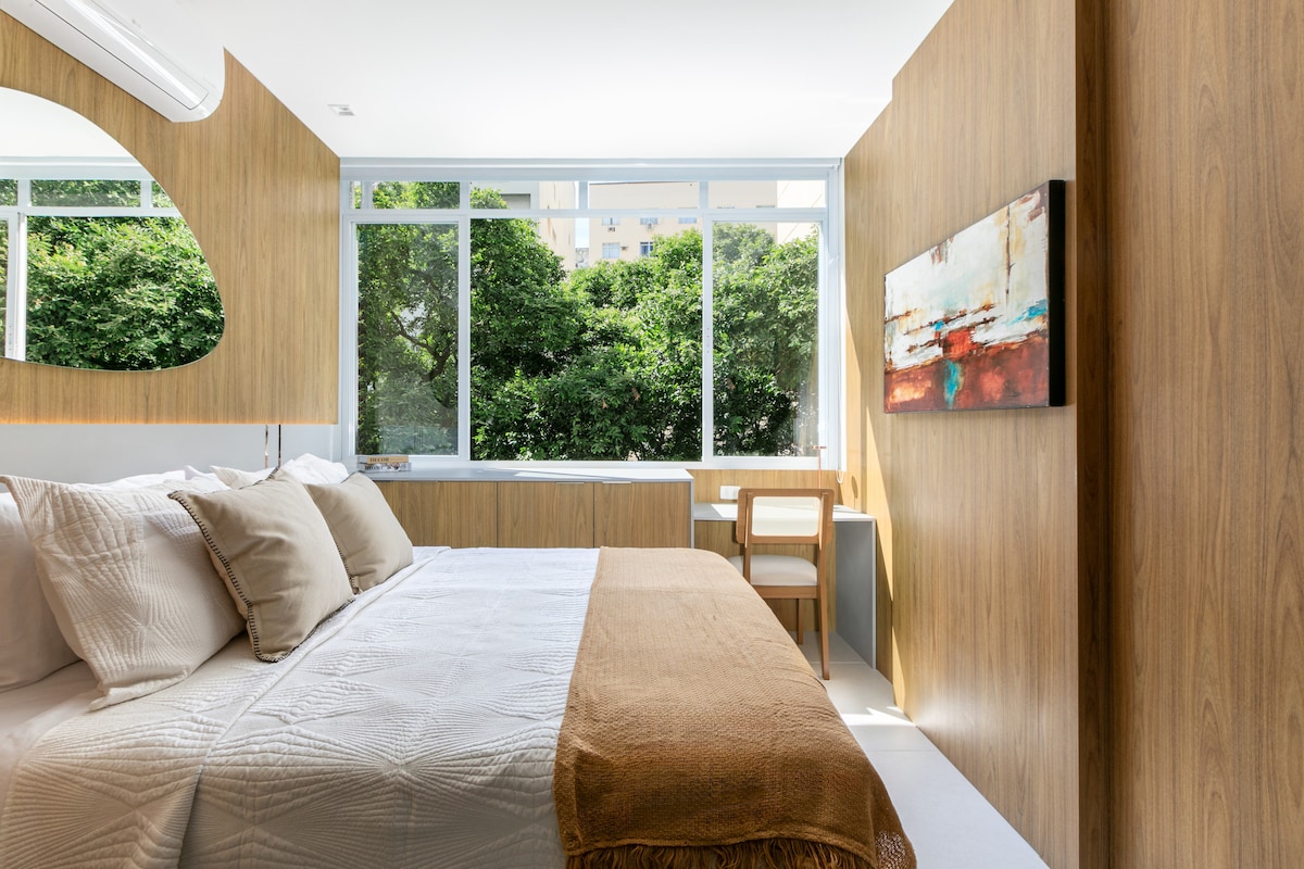這間位於科帕卡巴納的 Loft 空間不僅僅是一個睡覺的地方,更是由我(室內設計師 Belchior Almeida)精心打造的感官體驗。這個空間是為了那些重視平靜、美麗和存在的人而設。 在這裡,一切都能帶給你幸福感和靈感。這是一個充滿靈魂的度假勝地,歡迎你來到這裡,激發你的靈感,讓你真正放鬆身心。配備浸泡式浴缸、設備齊全的廚房和空調,距離海灘、地鐵和您完整住宿所需的一切設施僅幾步之遙。