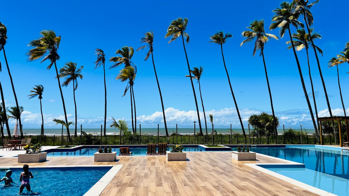 Apartamento na Praia dos Milionários, com vista frontal para o mar! São 2 quartos, ar-condicionado em todos os cômodos, Wi-Fi, sala ampla, cozinha equipada, varanda com vista para o mar, 2 banheiros (social e suíte) e vaga de garagem. Em frente à praia, basta atravessar a rua! Condomínio com segurança 24h, piscina de borda infinita, área de lazer completa e elevador. Conforto, praticidade e visual inesquecível para sua estadia no litoral baiano.